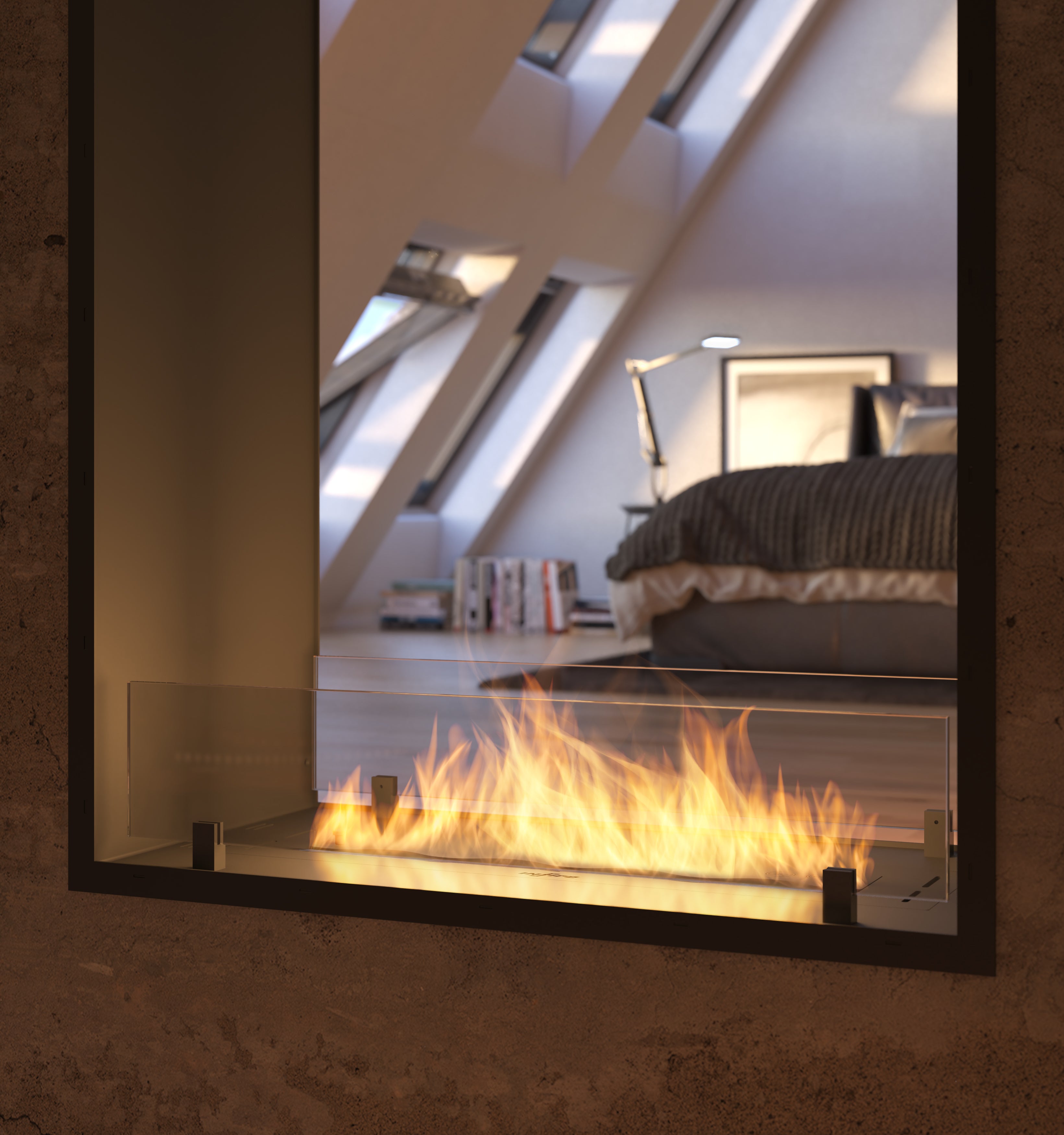 Neverdark Chalet-II verticale doorkijkhaard