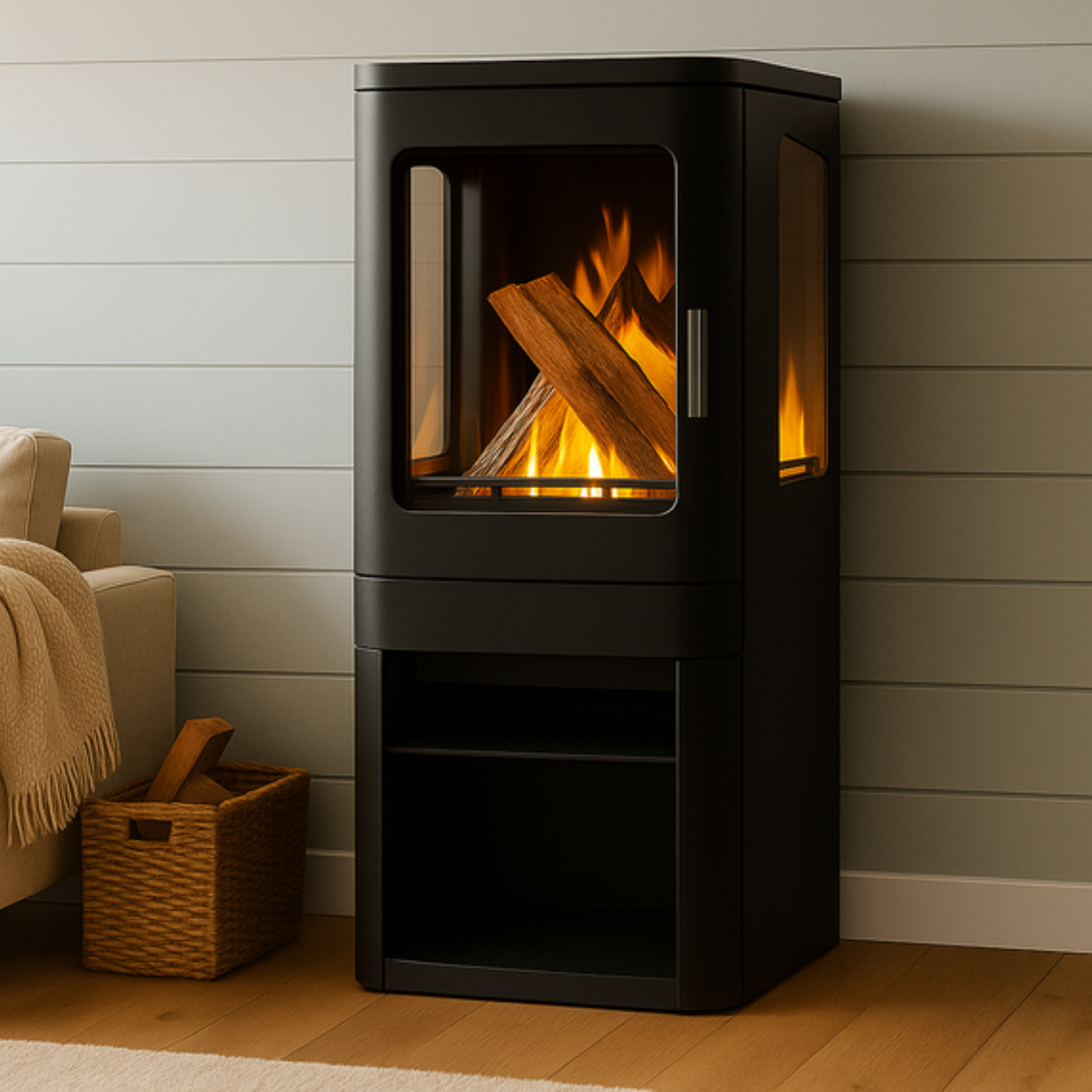 De Neo 3C combineert modern design met een panoramisch zicht op realistische LED-vlammen. Dankzij het driezijdige glas geniet u vanuit elke hoek van een sfeervol vlammenspel. Met zijn vermogen van 2000 watt verwarmt hij comfortabel en efficiënt, en met de afstandsbediening regelt u moeiteloos de intensiteit en kleur van de vlammen. Perfect te plaatsen als vrijstaand model of met een stijlvolle houtopslagmodule.