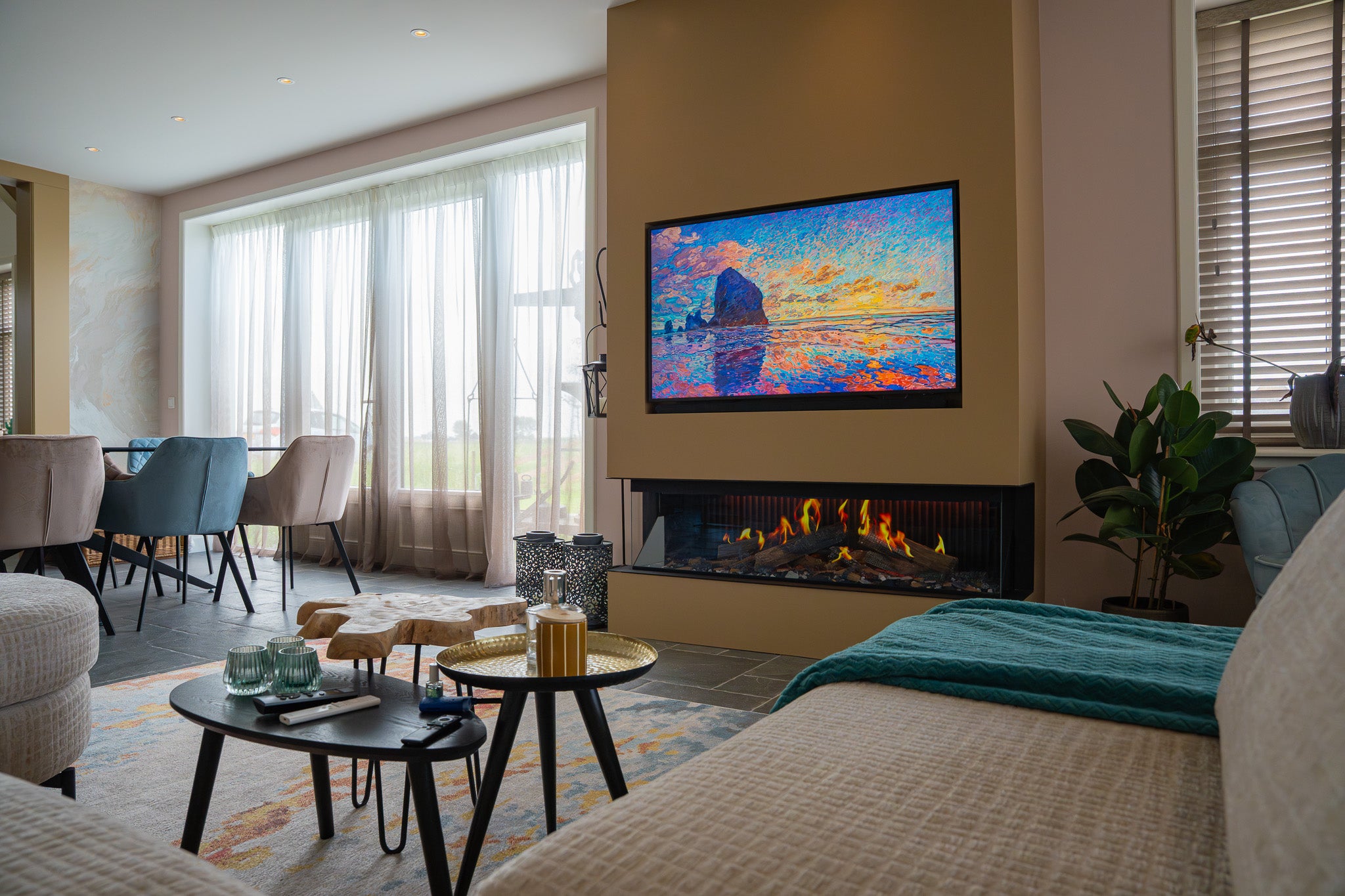 - Een tv-wand: haard onder de televisie voor een strak mediawand-effect.