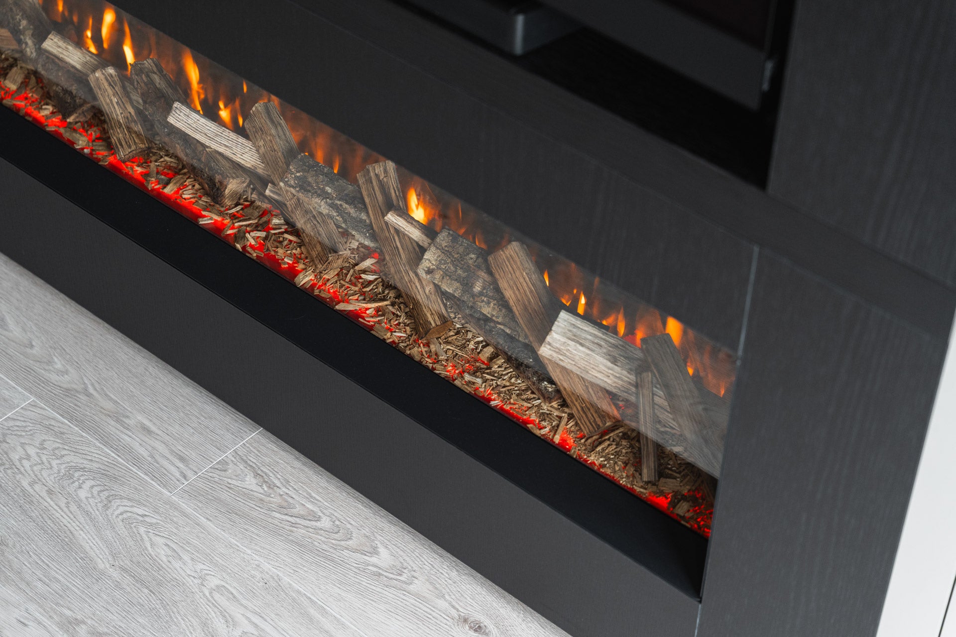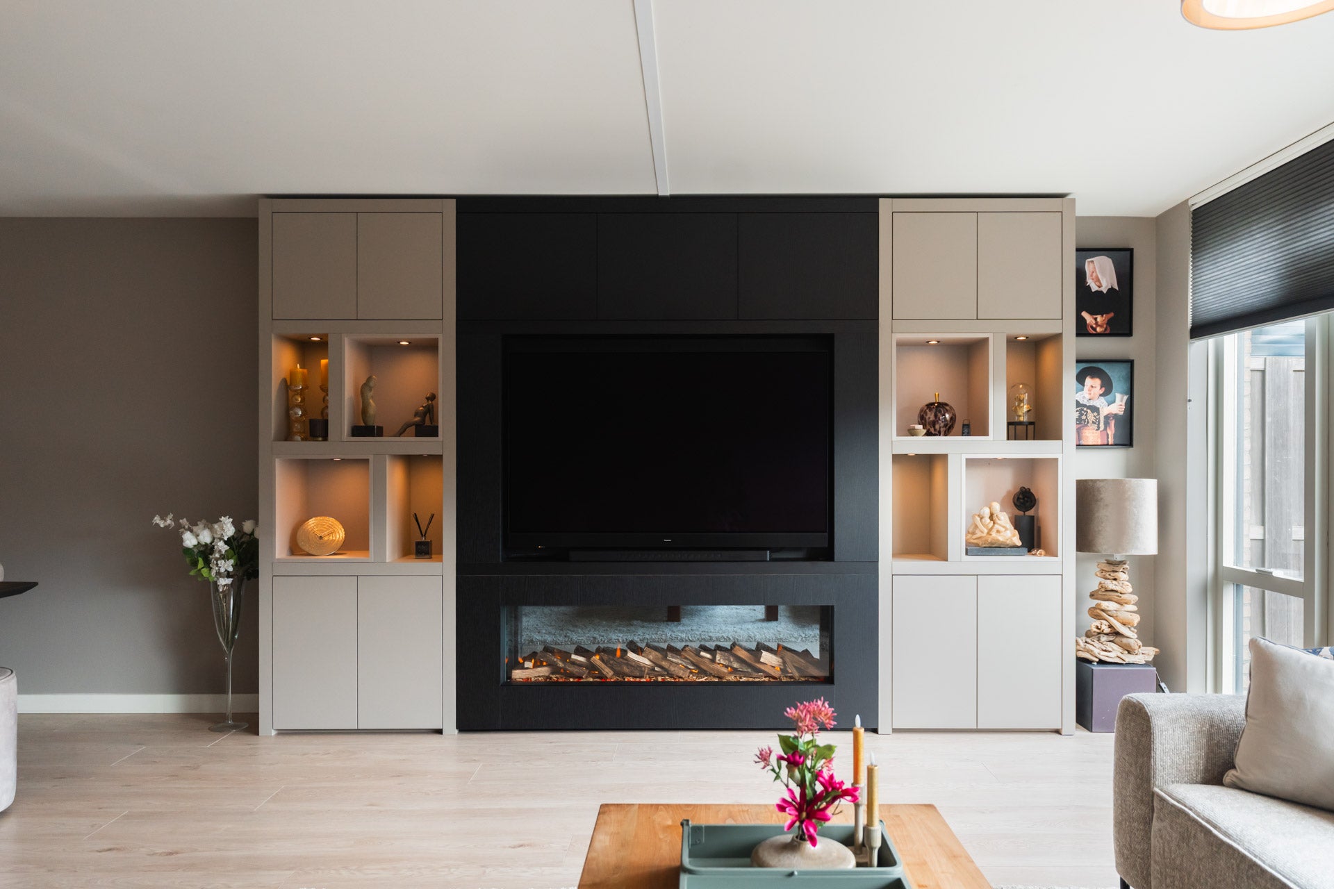 Luxe cinewall met sfeerhaard als middelpunt