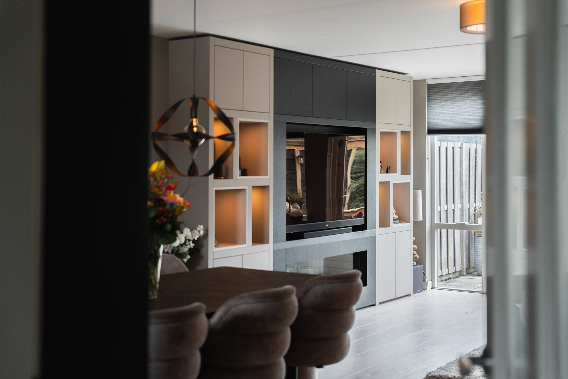 In Krimpen aan den IJssel hebben wij een stijlvolle cinewall op maat gerealiseerd die perfect aansluit bij het moderne interieur van de woning. In het midden van het meubel is een Infinix Fires Panoramic HD elektrische haard (150cm) geplaatst, die samen met de televisie een strak en harmonieus geheel vormt. De haard zorgt voor een sfeervol vlammenspel en vormt het warme middelpunt van de cinewall, waardoor de woonkamer zowel functioneel als gezellig wordt ingericht.