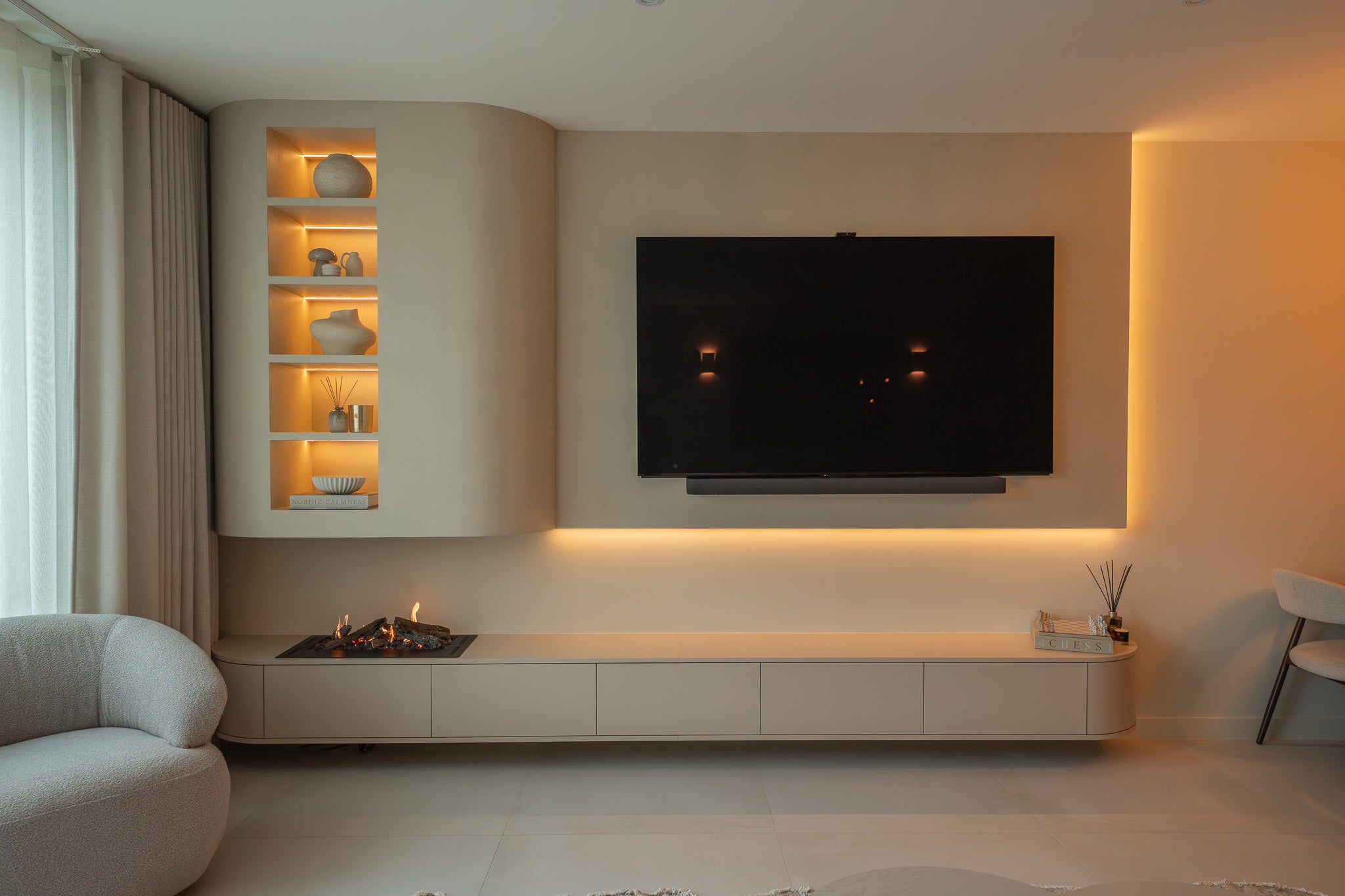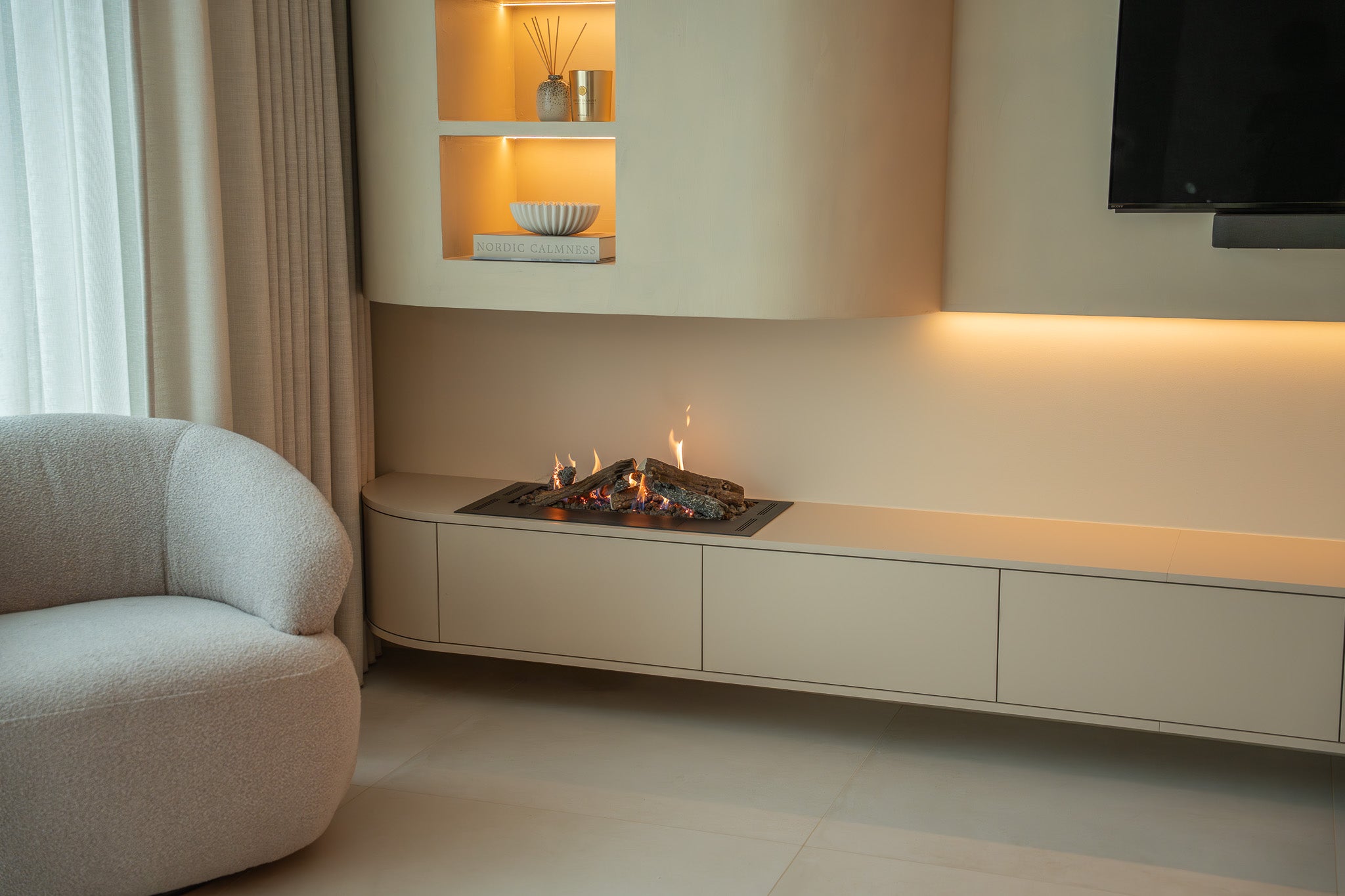 Bij het ontwerp en de realisatie van dit maatwerk haardmeubel stond balans centraal: rust, eenvoud en gebruiksgemak. De strakke belijning in combinatie met afgeronde vormen versterkt het Japandi karakter, terwijl het lichte kleurenpalet bijdraagt aan een open en ontspannen sfeer. Door het haardmeubel volledig op maat te maken, sluit het perfect aan op de ruimte en de wensen van de bewoners. Het resultaat is een uniek Japandi haardmeubel in Nijmegen dat warmte, luxe en rust uitstraalt en jarenlang plezier biedt.