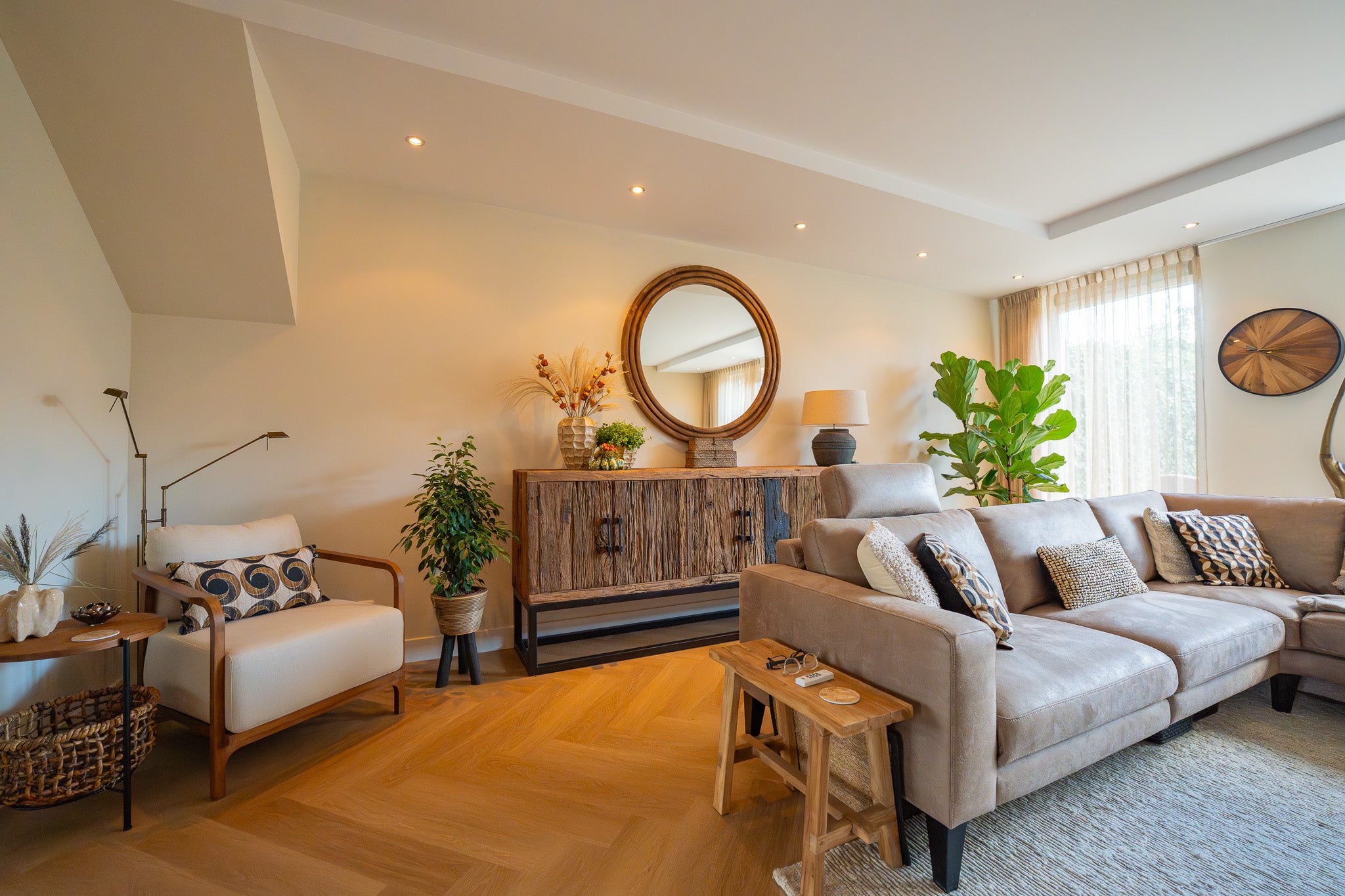 In een moderne woning in Spaarndam hebben wij een stijlvol maatwerk haardmeubel gerealiseerd waarbij materiaalgebruik en afwerking centraal staan. Het onderblok is uitgevoerd in een elegante travertinlook, gecreëerd met het FD01 Concreta HPL decor van Decolegno. Dit hoogwaardige HPL is verlijmd op MDF, waardoor het onderblok strak in verstek kon worden gemaakt voor een luxe en naadloze uitstraling. De warme, natuurlijke uitstraling van het travertinlook blok vormt een prachtig contrast met de strakke lijnen van het meubel en sluit perfect aan bij hedendaagse interieurs.