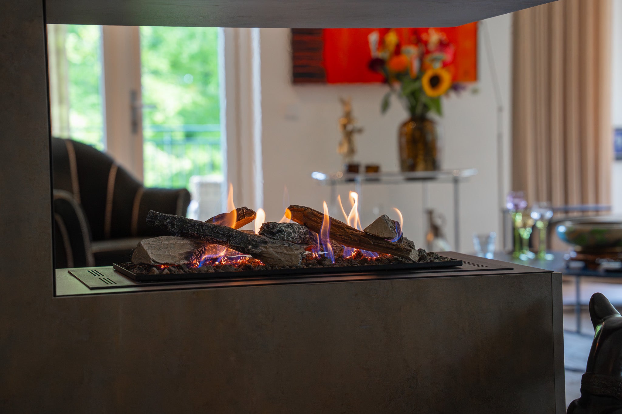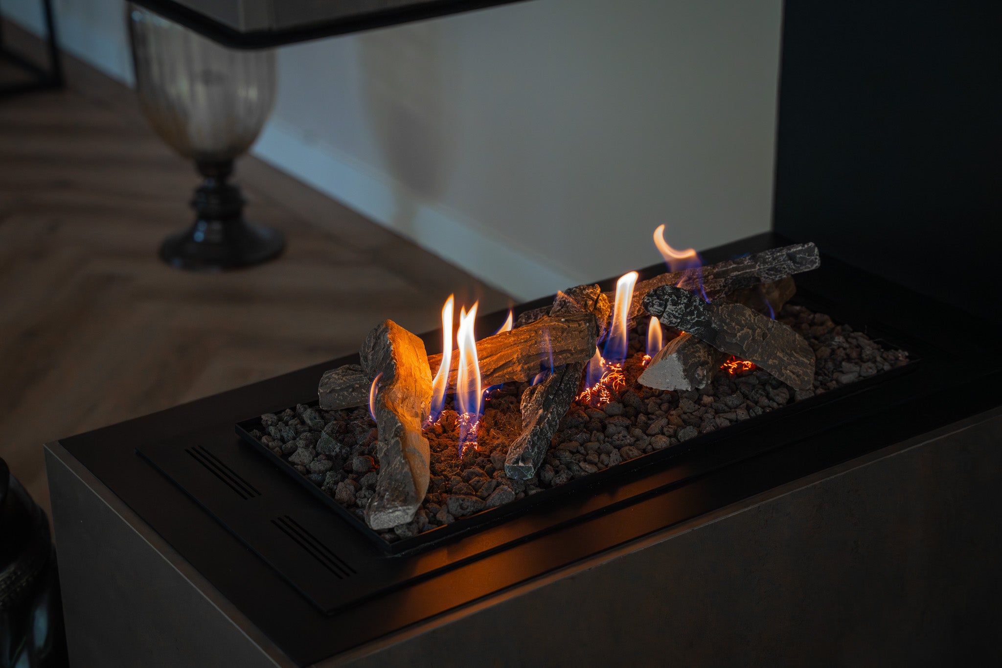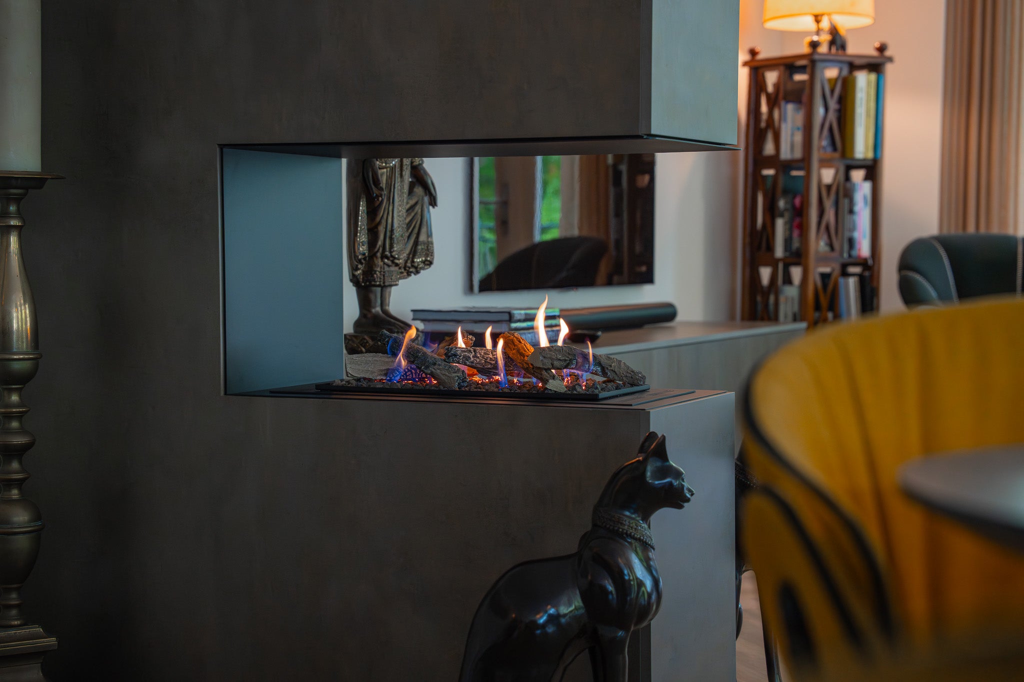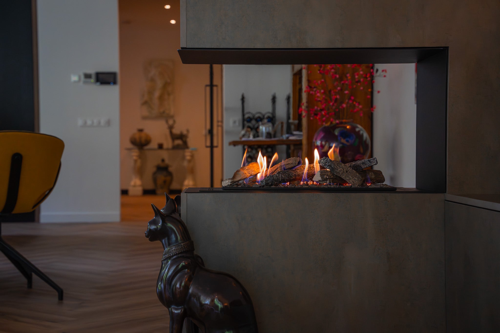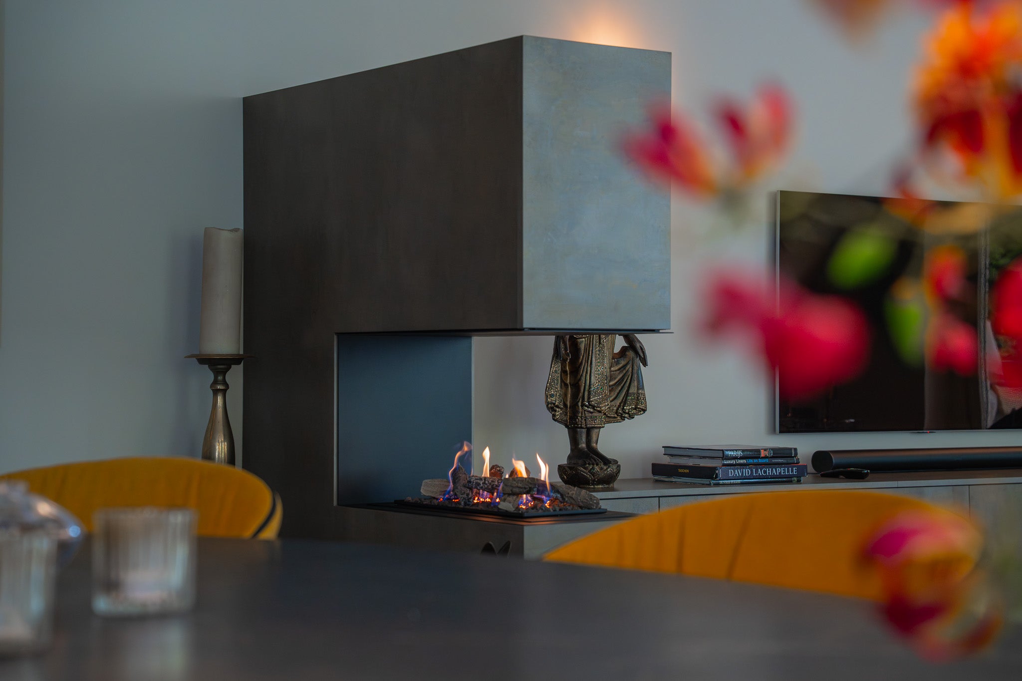 De geïntegreerde Neverdark bio-ethanol haard biedt een realistisch en levendig vlambeeld, zonder de noodzaak van een rookkanaal. Hierdoor is de haard eenvoudig te plaatsen en onderhoudsarm, ideaal voor moderne woonruimtes. Voor dit project in Bakkum hebben we het haardmeubel dressoir volledig afgestemd op de wensen van de bewoners, met oog voor detail en balans tussen design en gebruiksgemak. Het resultaat is een uniek meubelstuk dat warmte, elegantie en praktische functionaliteit samenbrengt in één harmonieuze opstelling.