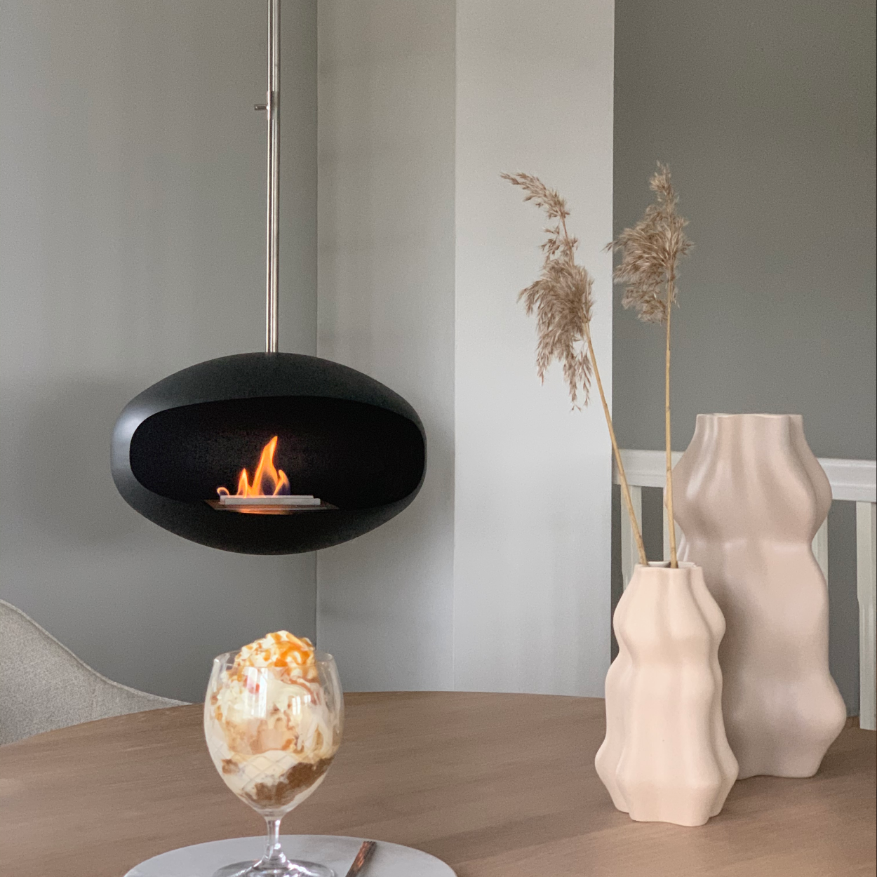De Aeris Hanging Cocoon is niet zomaar een haard – het is een stijlvolle en functionele toevoeging aan uw interieur, die sfeer creëert zonder gedoe. En... mocht u later toe zijn aan verandering? Dan kunt u de Aeris ombouwen tot Cocoon Pedestal, een staande variant. Ideaal voor liefhebbers van flexibiliteit.