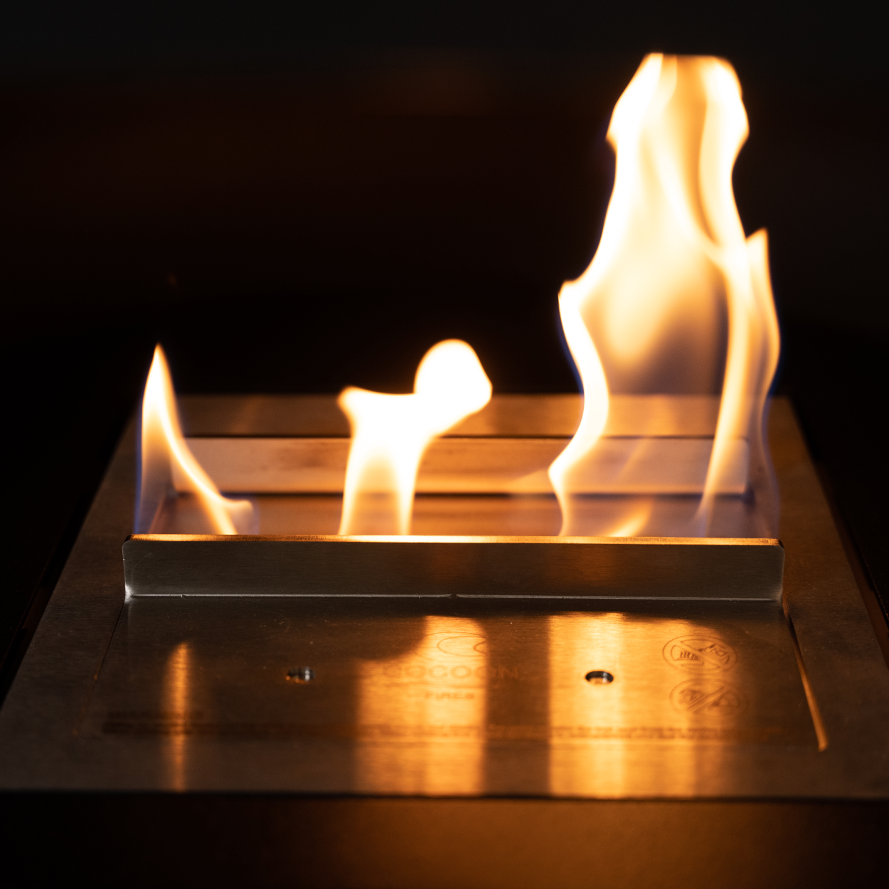 Met de nieuwe Cocoon 2.0-brandtechnologie geniet u van verbeterde prestaties, minder verbruik en een nog strakker design. De brander is naadloos geïntegreerd, waardoor de vlammen prachtig opgaan in het ontwerp van de haard.