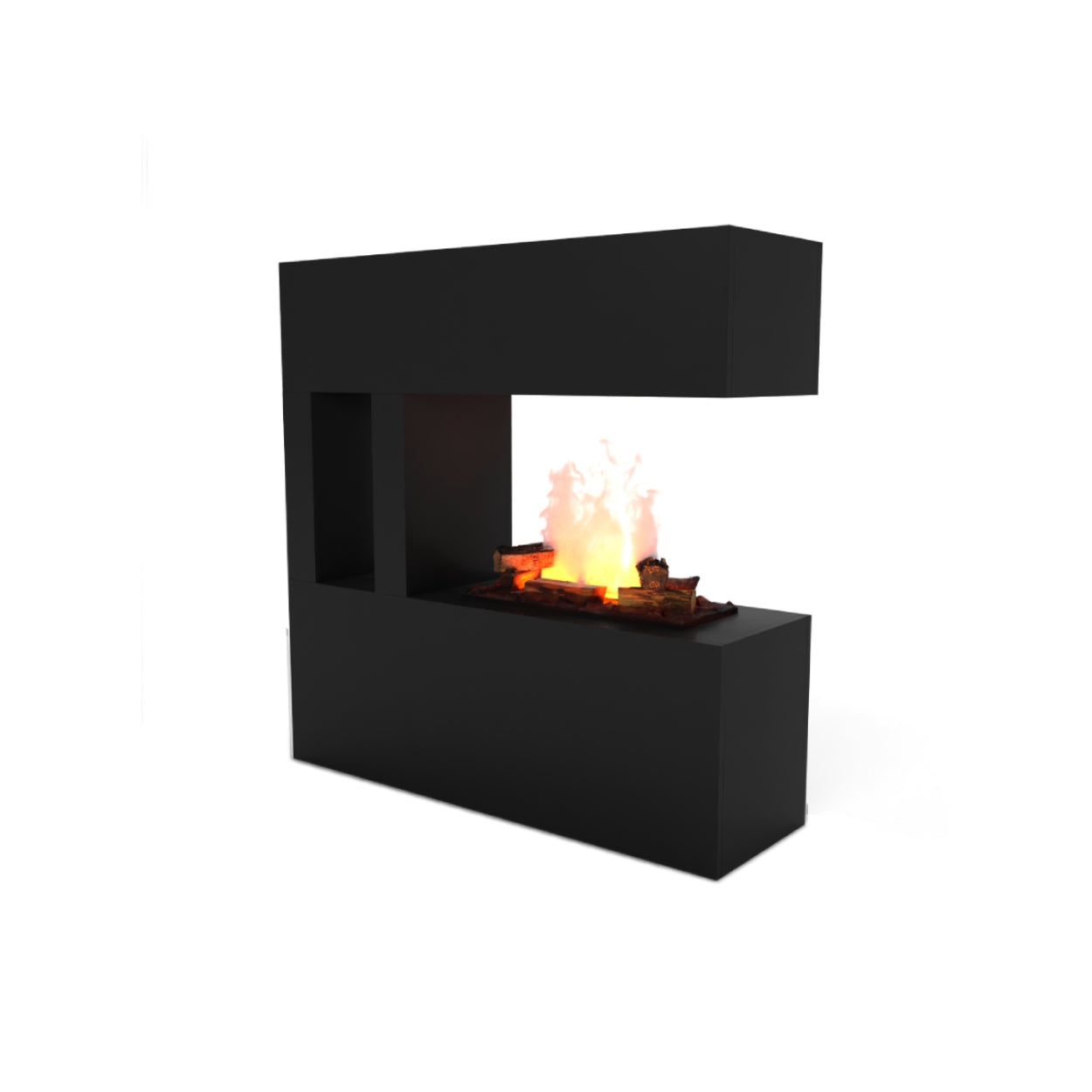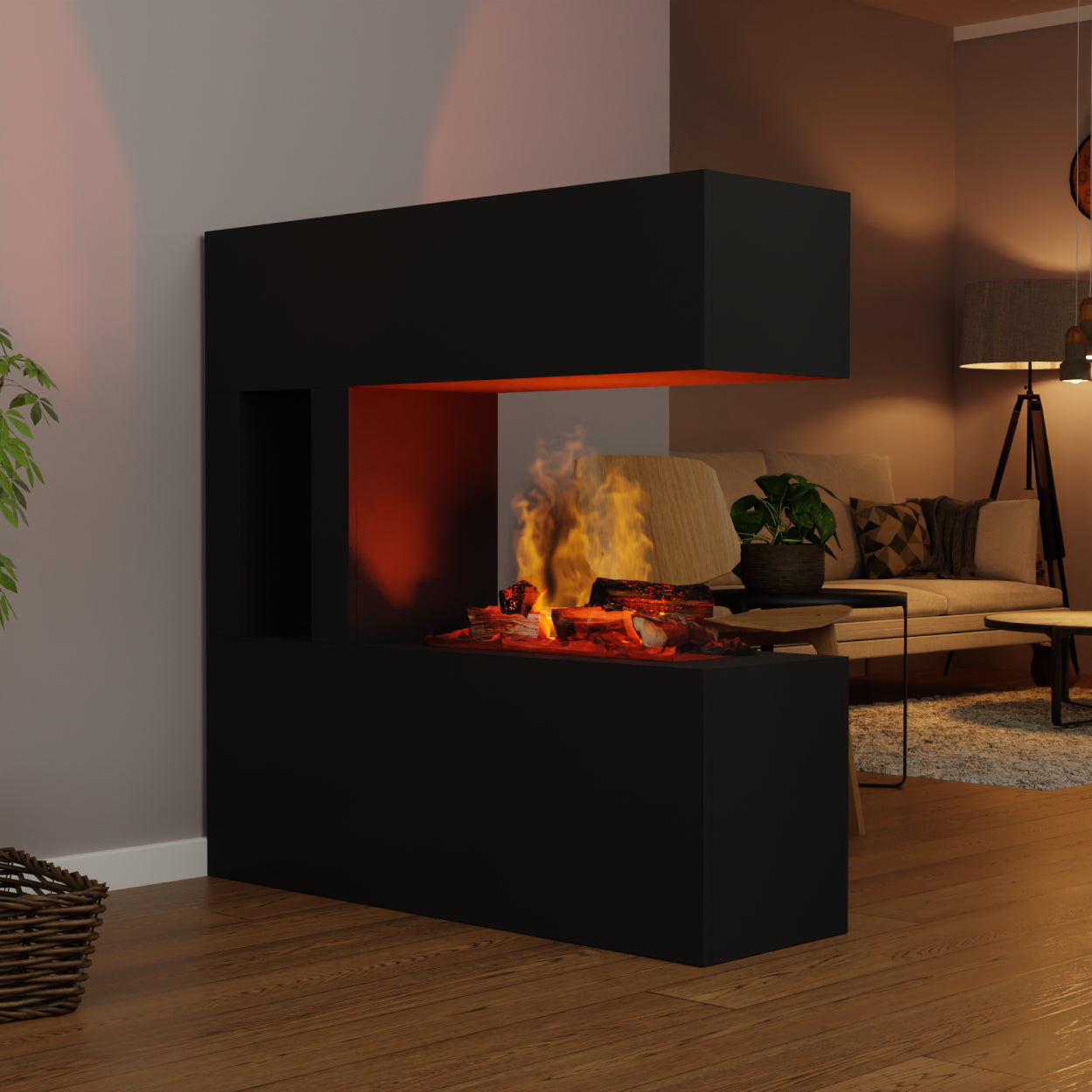 De open kast biedt plek voor boeken, accessoires of een mooie plant, terwijl u aan beide zijden geniet van het knusse vlameffect. Zo voegt u warmte én functionaliteit toe aan uw interieur – zonder schoorsteen of vergunning.