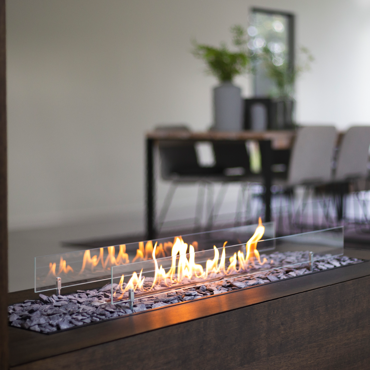 - Doorkijkhaard: open aan beide zijden, inclusief glazen afwerking