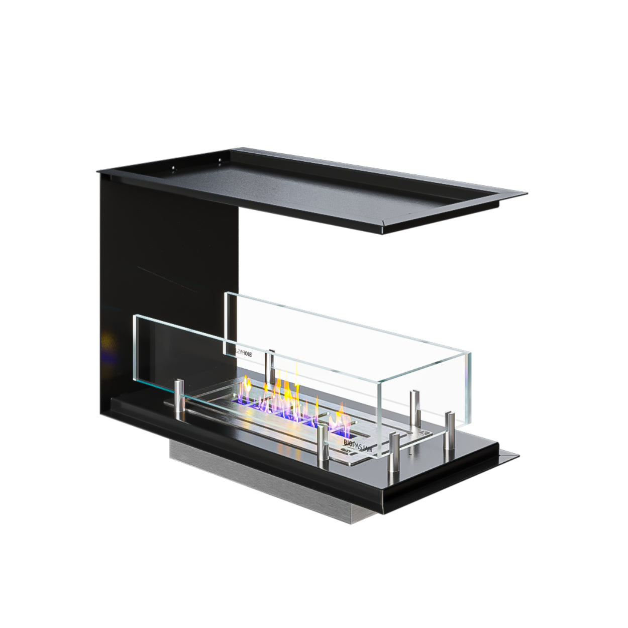 De Biosteelbox is uitgerust met de Artflame brander, een handmatige bio-ethanolbrander van roestvrij staal, ontworpen voor veiligheid én een prachtig vlambeeld.