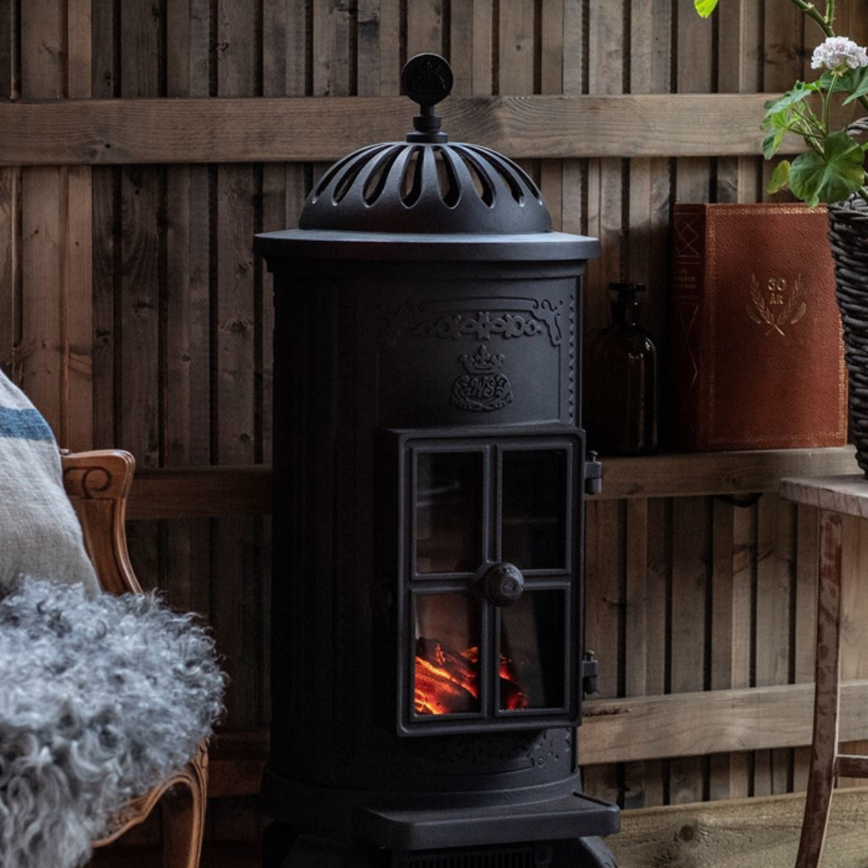 Geniet van de charme van een klassieke houtkachel zonder schoorsteen, as of rook. U hoeft de Carl alleen maar in te pluggen.