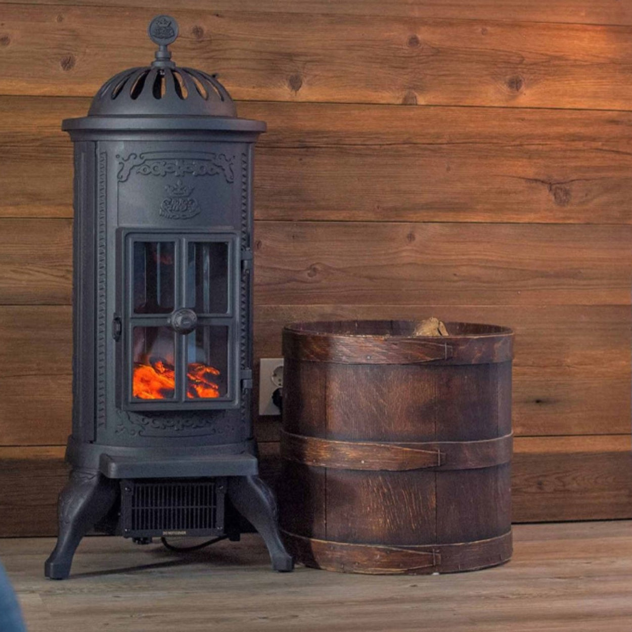 De Carl lijkt op een klassieke houtkachel, maar werkt volledig elektrisch. Geen schoorsteen, geen roet, geen as – alleen een stopcontact is voldoende. U plugt de haard in en binnen enkele seconden geniet u van een realistisch vlambeeld en een warme, gezellige sfeer. Ideaal voor elke ruimte in huis!