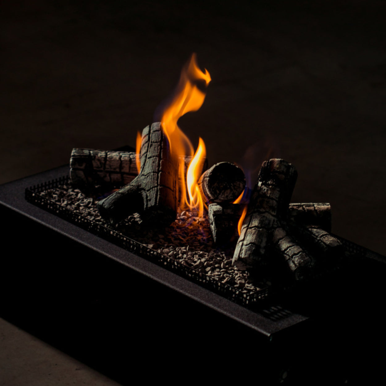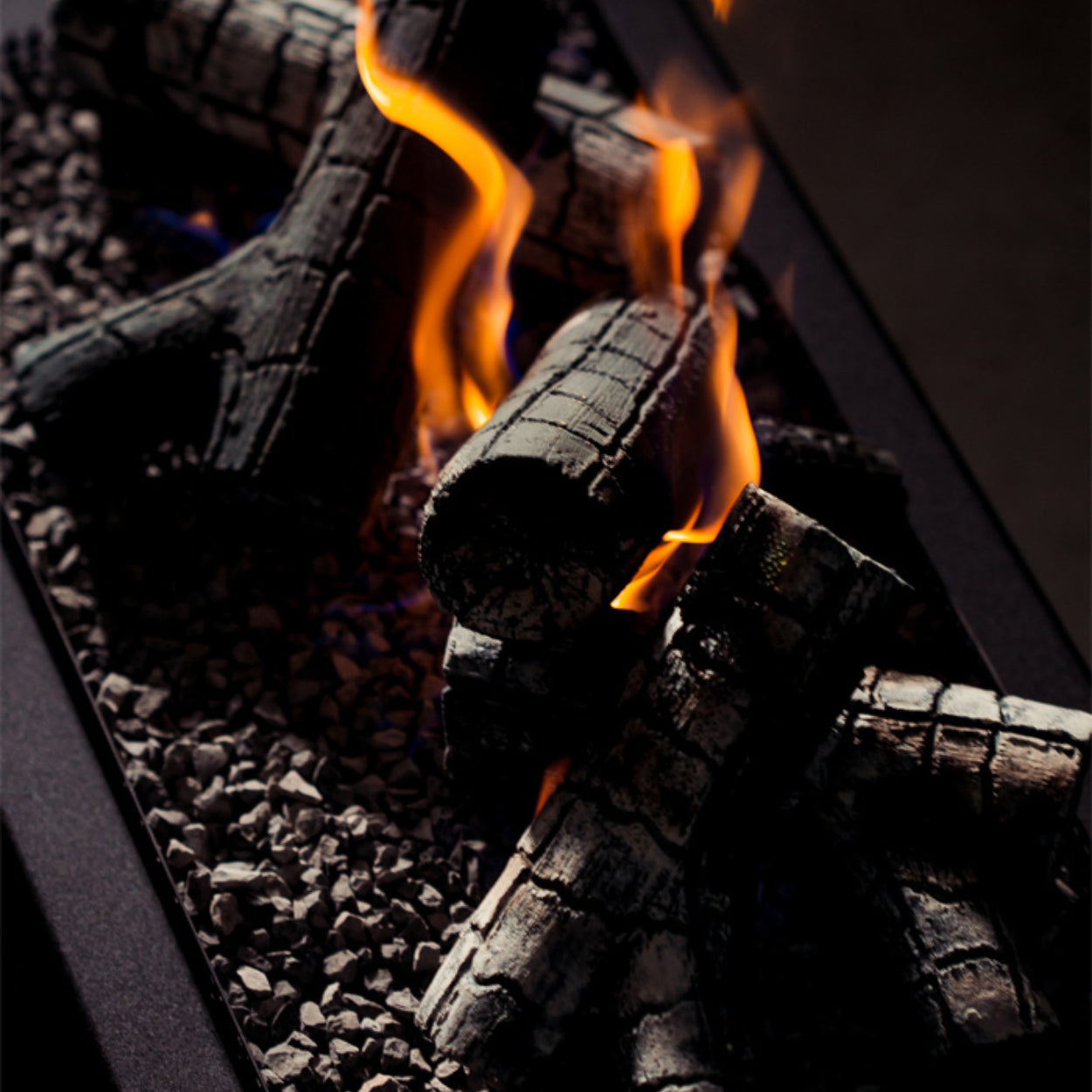 - Realistisch vlambeeld: vlammen dansen natuurlijk rond keramisch hout en kolen.