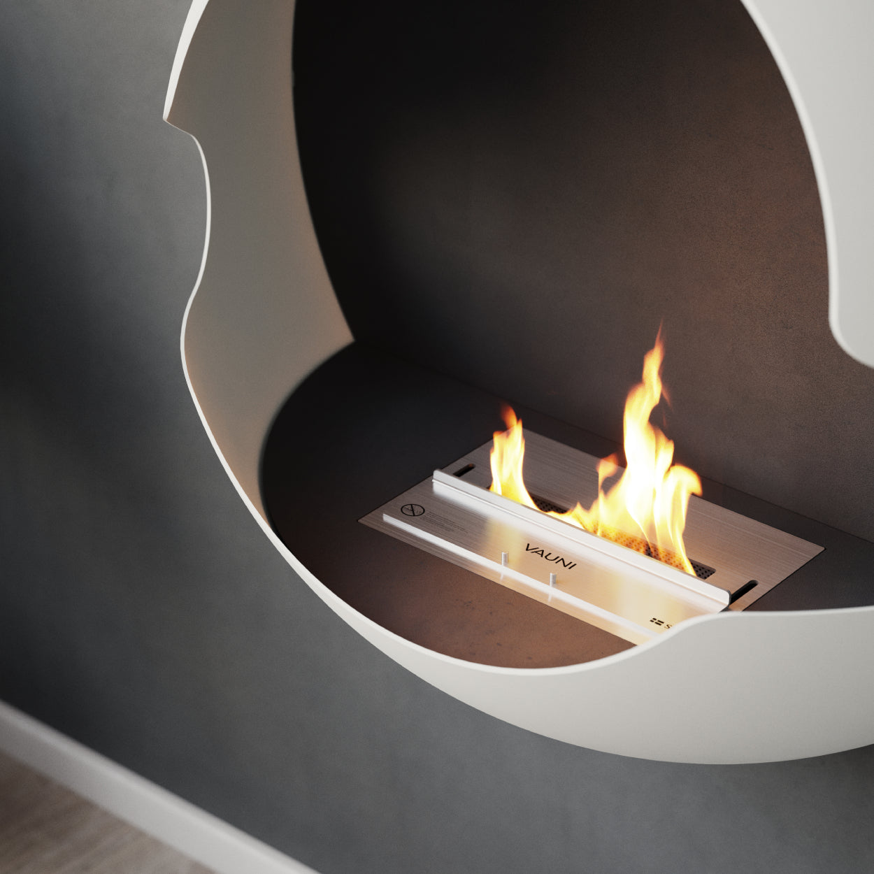 De Vauni Cupola is ontworpen met het oog op gemak. U monteert de haard moeiteloos aan de wand, net zoals een televisie. Dankzij het compacte formaat is hij geschikt voor elke ruimte, van woonkamer tot loft of kantoor.