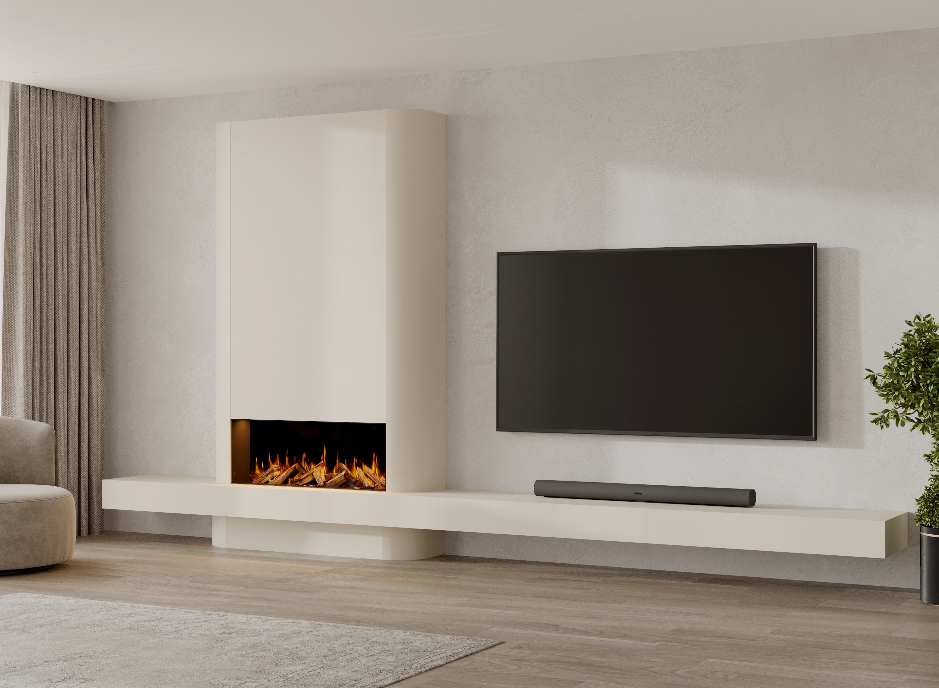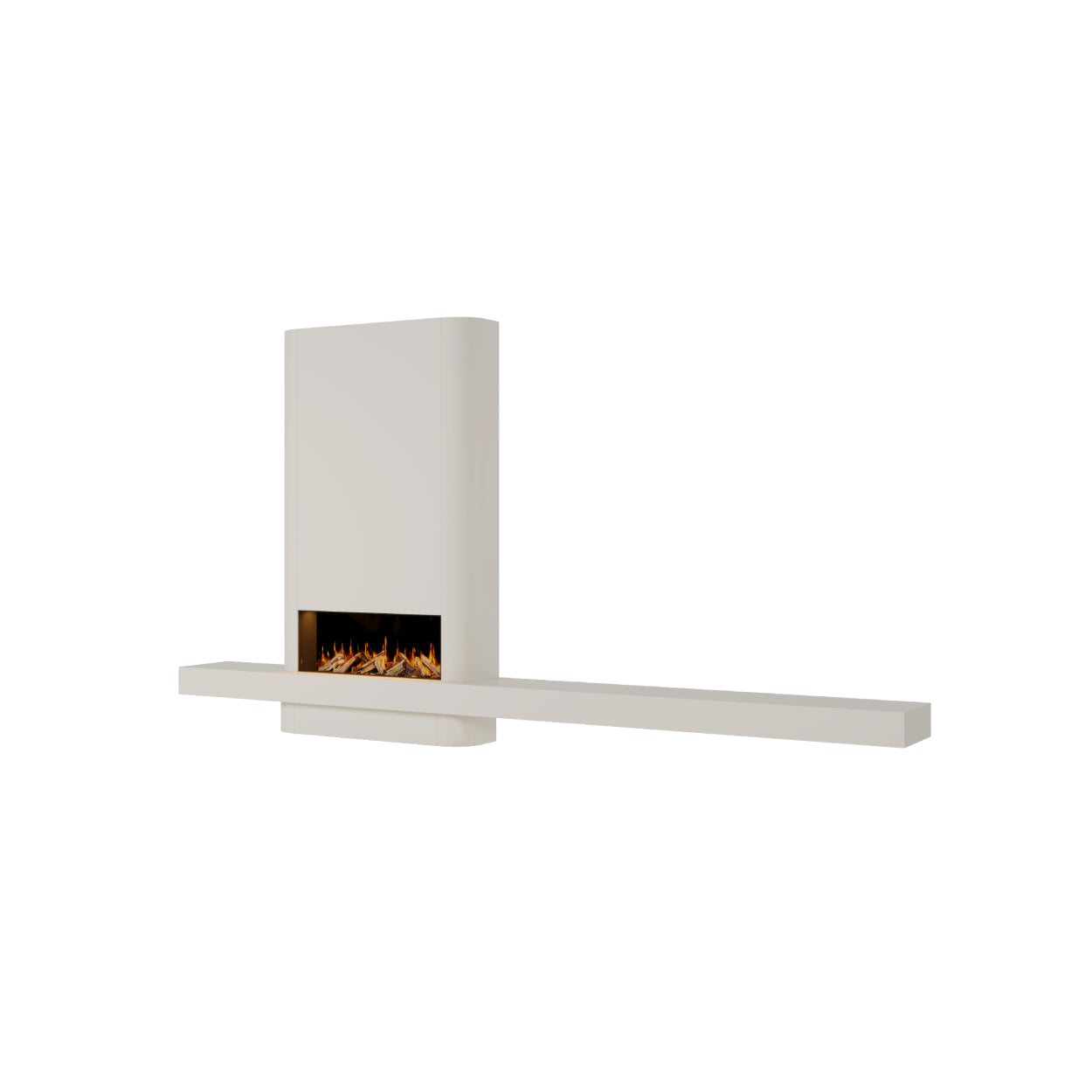 Breng verfijning in uw leefruimte met dit plateau gecombineerd met een inbouwhaard in een subtiele koof. De ingetogen vormen en zachte kleuren zorgen voor een serene uitstraling en visuele diepte in iedere kamer.