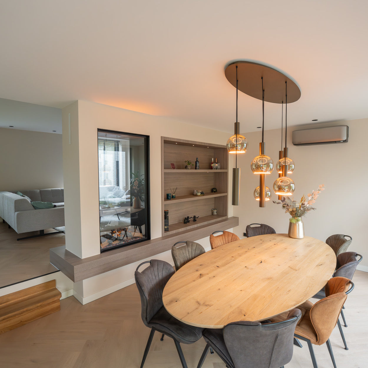 Verticale doorkijkhaard voor het verbinden van ruimtes