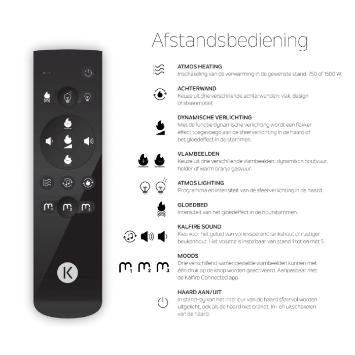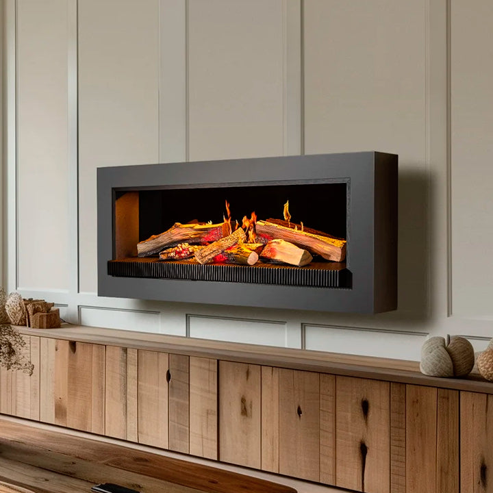 Ervaar een totaal nieuwe dimensie van sfeer en comfort met de Kalfire E-one: een revolutionaire elektrische haard die gebruikmaakt van geavanceerde holografische 3D-technologie. De levensechte projectie van vlammen op handgemaakte houtstammen creëert een vuurbeeld dat niet te onderscheiden is van echt vuur. Zonder rook, zonder rookkanaal – maar mét alle warmte en gezelligheid.