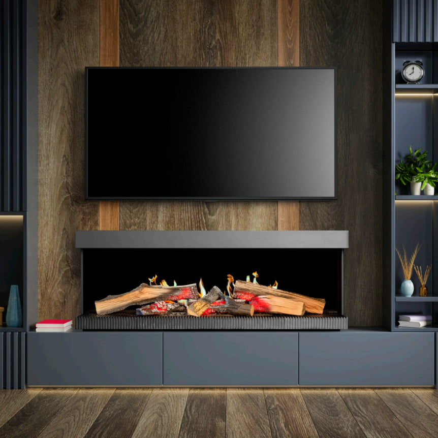 De Kalfire E-one sfeerhaarden zijn volledig elektrisch en dus op vrijwel elke plek te installeren – van cinewalls tot doorkijkopstellingen. Dankzij de modulaire opbouw en diverse afmetingen kiest u zelf het model dat het beste past bij uw ruimte.