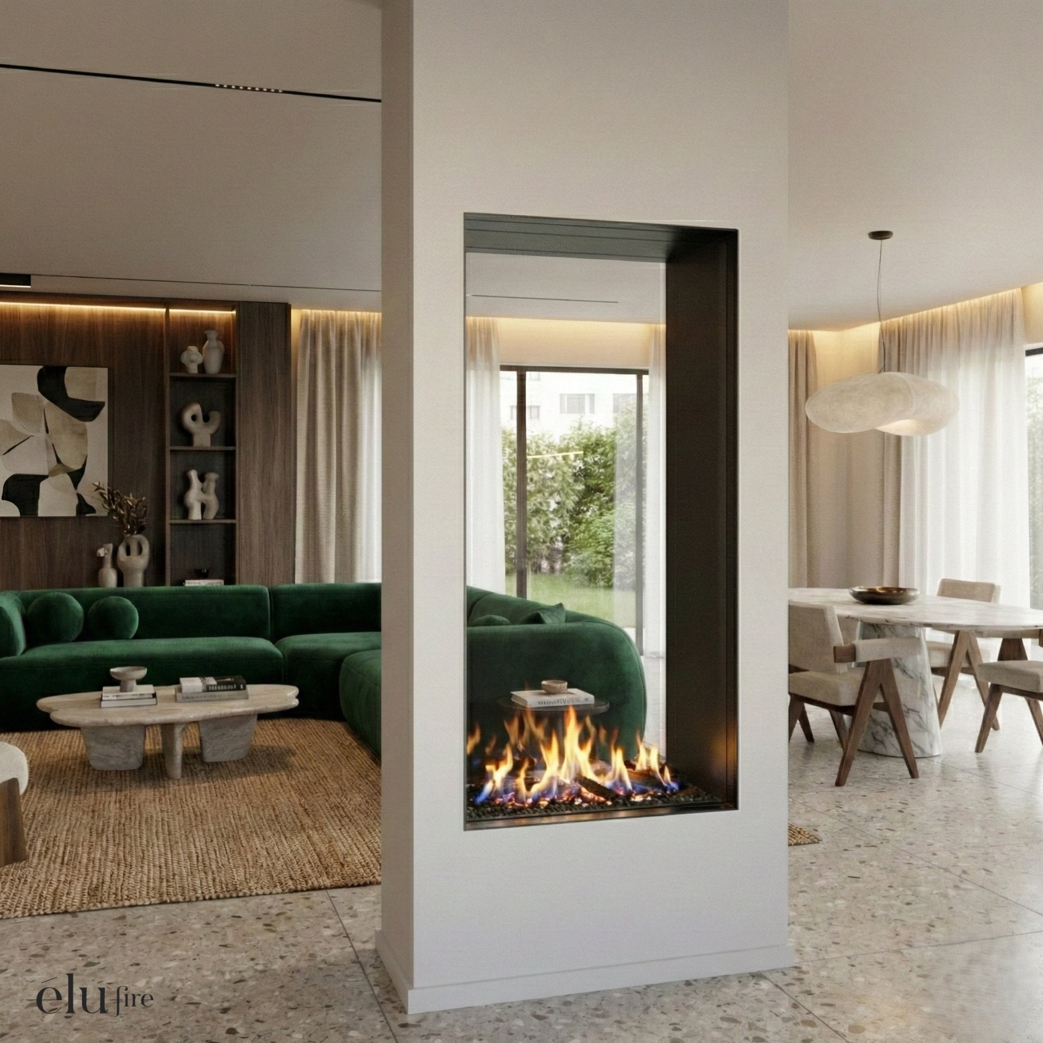 De kracht van Elu-fire schuilt in eenvoud. De haarden vereisen geen bouwkundige ingrepen, gasleiding of rookkanaal, waardoor ze vrijwel volledig op maat kunnen worden geïntegreerd in elk interieur. Elu-Fire haarden zijn verkrijgbaar in verschillende lengtes en hoogtes. Hierdoor zijn ze geschikt als subtiele sfeermaker, maar bijvoorbeeld ook als roomdivider statement piece.