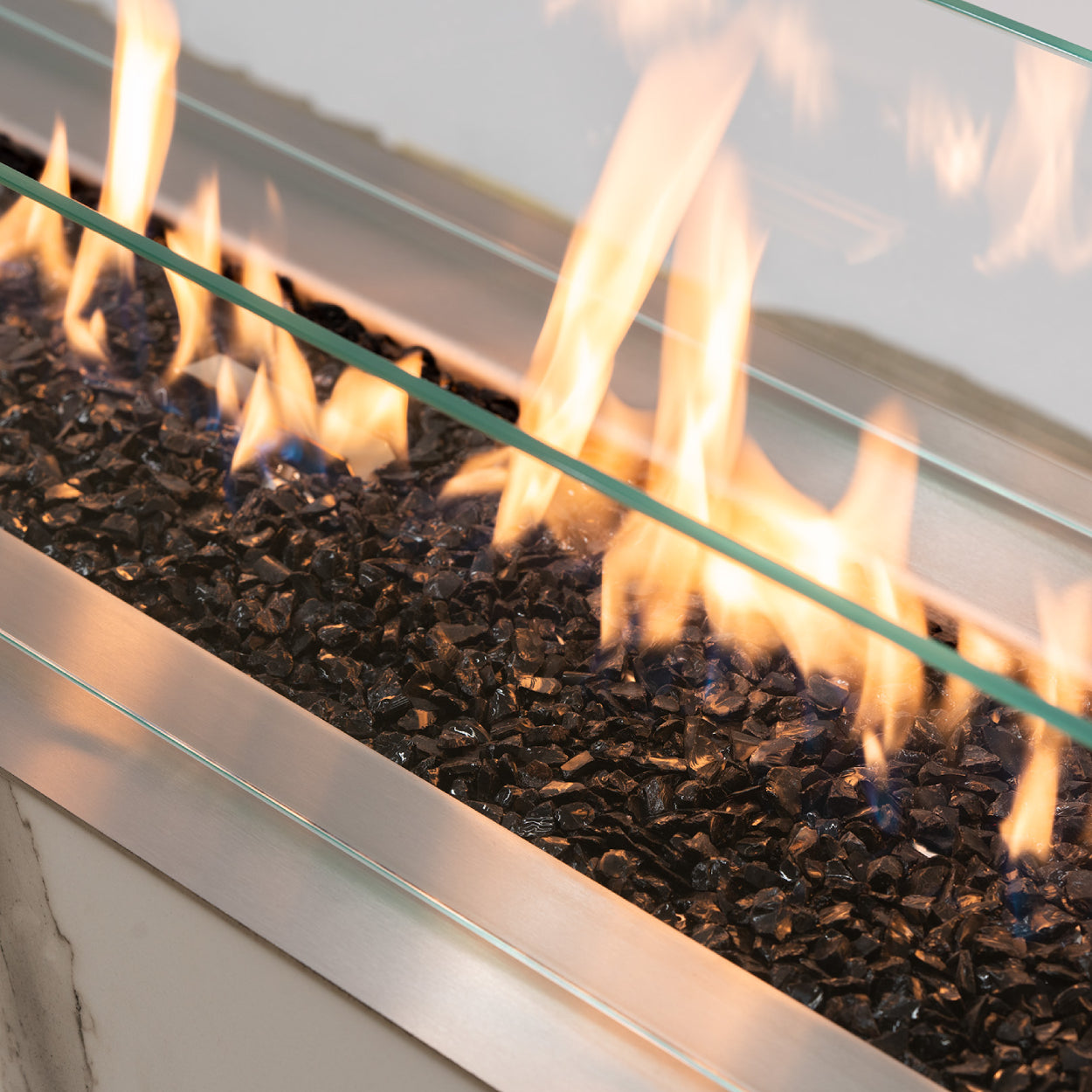 De behuizing van de Galaxy Fireplace is vervaardigd uit het prestigieuze Dekton-materiaal van Cosentino: krasbestendig, hittebestendig én een stijlvolle matte uitstraling. Dankzij de elegante afwerking met zwart glasgrind en roestvrijstalen top, is deze haard niet alleen een warmtebron – maar een echte blikvanger in uw tuin.
