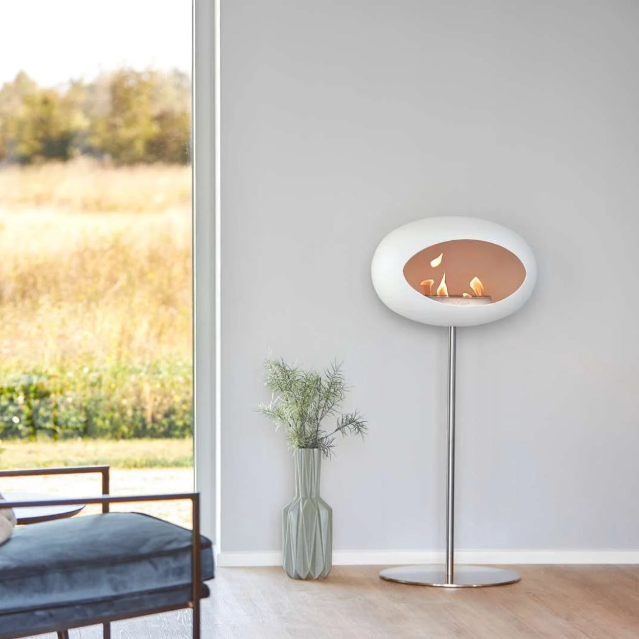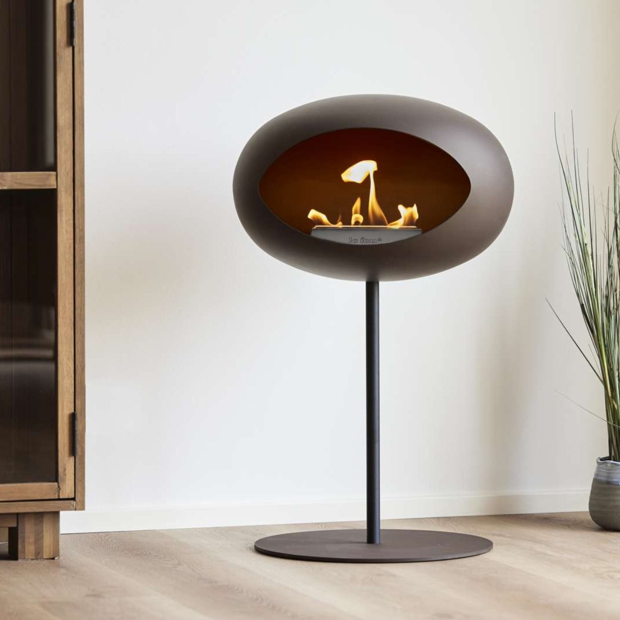 Laat u betoveren door de bijzondere uitstraling van de Le Feu Ground Steel High. Deze bio-ethanol haard kenmerkt zich door zijn elegante ontwerp met één enkele poot, die de koepelvormige verbrandingskamer als het ware op een voetstuk plaatst. Het resultaat? Een stijlvol vlammenspel dat letterlijk boven de grond zweeft – sfeervol, modern en een absolute blikvanger in elk interieur.