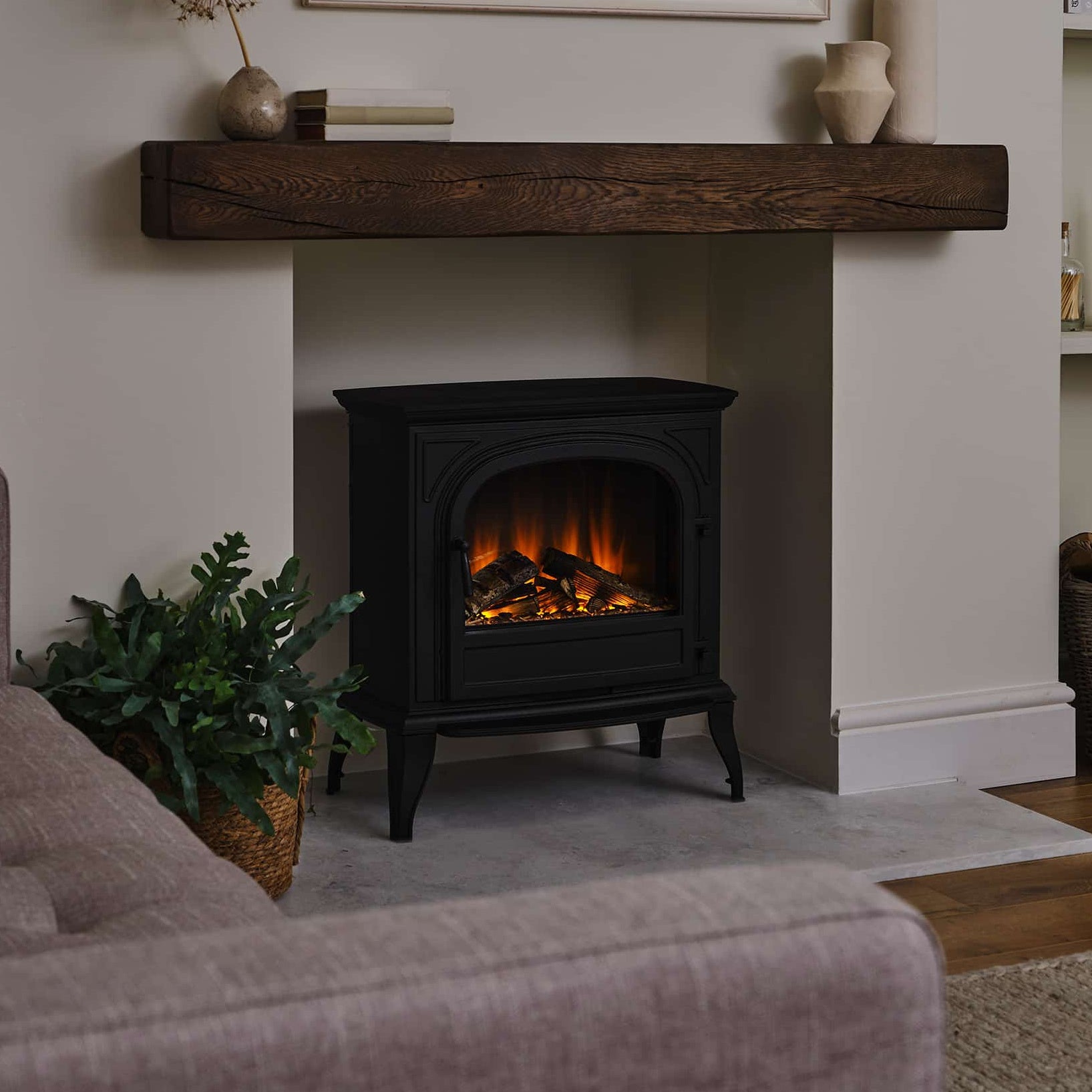 De Hinton is een exclusieve vrijstaande elektrische haard, volledig vervaardigd uit hoogwaardig gietijzer en afgewerkt met authentieke details. Deze haard past perfect zowel in bestaande interieurs als in moderne nieuwe omgevingen. Standaard voorzien van luxe houten stammen en elegant dark glass, is de Hinton een absolute blikvanger. Combineer dit met het hoogwaardige vuurbeeld waar British Fires bekend om staat en u haalt een tijdloos pronkstuk in huis.