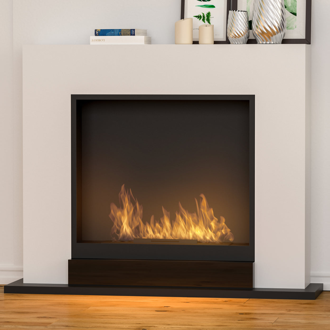 Met een breedte van 120 cm en een hoogte van 100 cm vormt de Inportal 2 een visueel anker in elke ruimte. De opbouw bestaat uit een robuuste MDF-constructie, strak gelakt in helder wit, met een subtiel profiel in de omlijsting dat doet denken aan klassieke schouwen – maar dan in een moderne uitvoering. Deze haard is ideaal als stijlvol alternatief voor een traditionele open haard en biedt dezelfde warme beleving, zónder rookkanaal of complexe installatie.