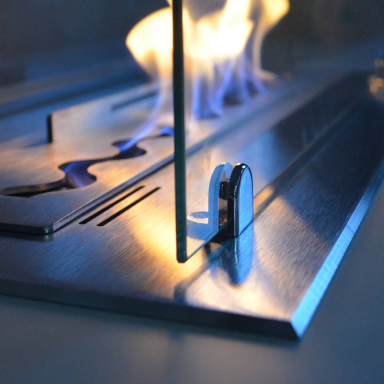 Deze haard is uitgerust met een TÜV-gecertificeerde bio-ethanol brander, voorzien van een absorberende keramische vezelmat en een drukontlastend ontluchtingssysteem. Samen met de twee panelen van gehard glas geniet u van een stabiele en veilige vlam, volledig geurloos en rookvrij – perfect voor binnengebruik.