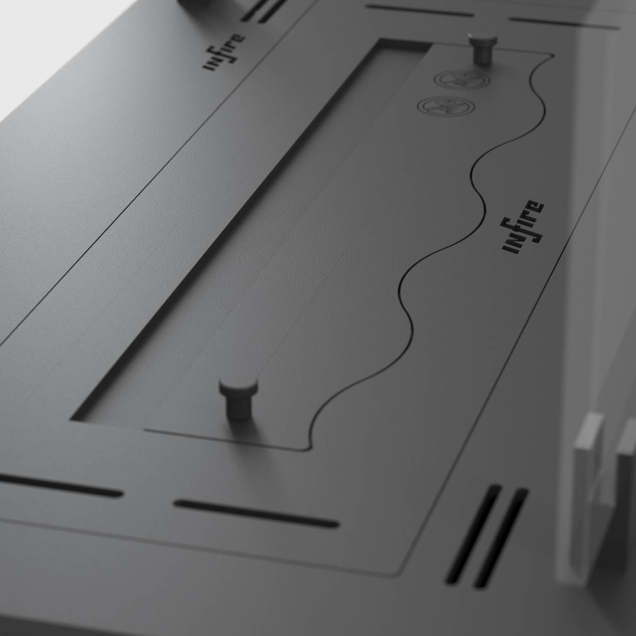 Infire Insert Slim De Infire bio-ethanol haarden zijn vervaardigd uit dik gepoedercoat staal en zwart hittebestendig verf, wat ze zowel stijlvol als veilig maakt. Deze hoogwaardige branders zijn ideaal voor inbouwprojecten, zoals in een meubel, schouw of nis. Dankzij de eenvoudige installatie en snelle werking zijn ze een uitstekende keuze voor uw interieur. De branders zijn TÜV gecertificeerd, waardoor u verzekerd bent van veiligheid en kwaliteit. Het keramische vezelmat in het reservoir absorbeert de vloeistof veilig, terwijl het rooster de brander compleet afwerkt. Met de bijgeleverde hendels kunt u de brander eenvoudig afsluiten, waardoor de vlammen gedoofd worden door zuurstofonttrekking.