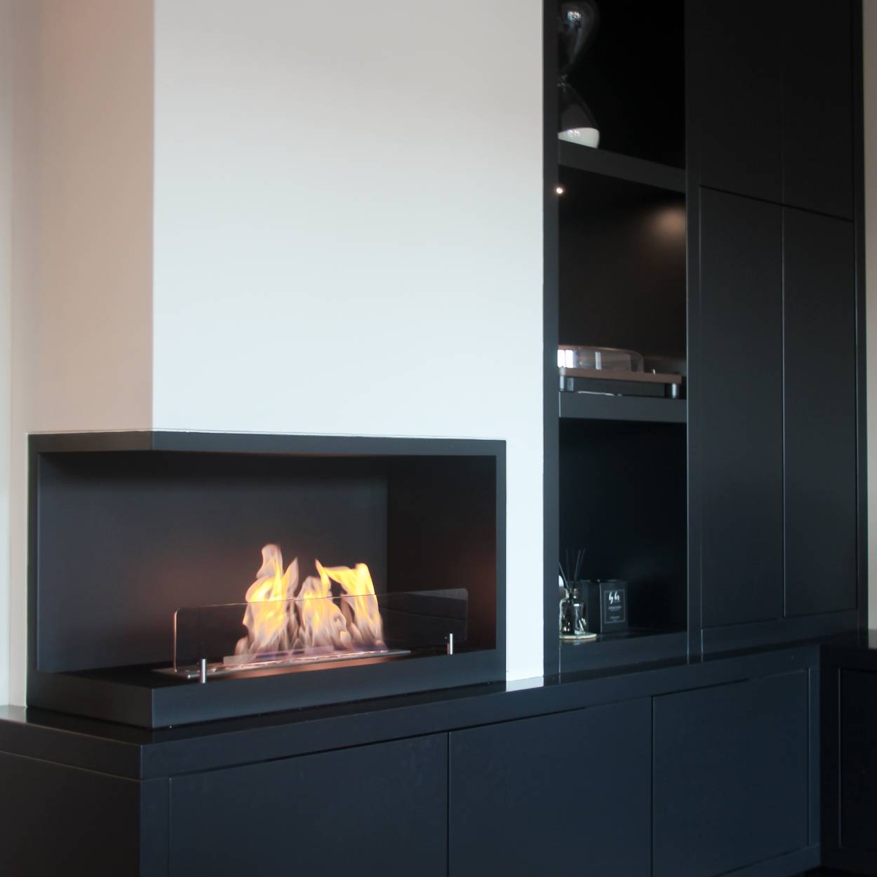 Een opvallende omlijsting die karakter toevoegt. Ideaal voor maatwerkmeubels of cinewalls waarin de haard een centrale rol speelt.