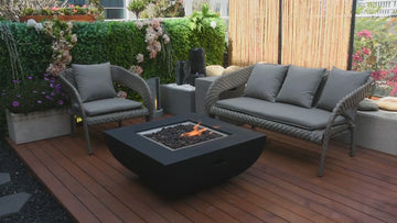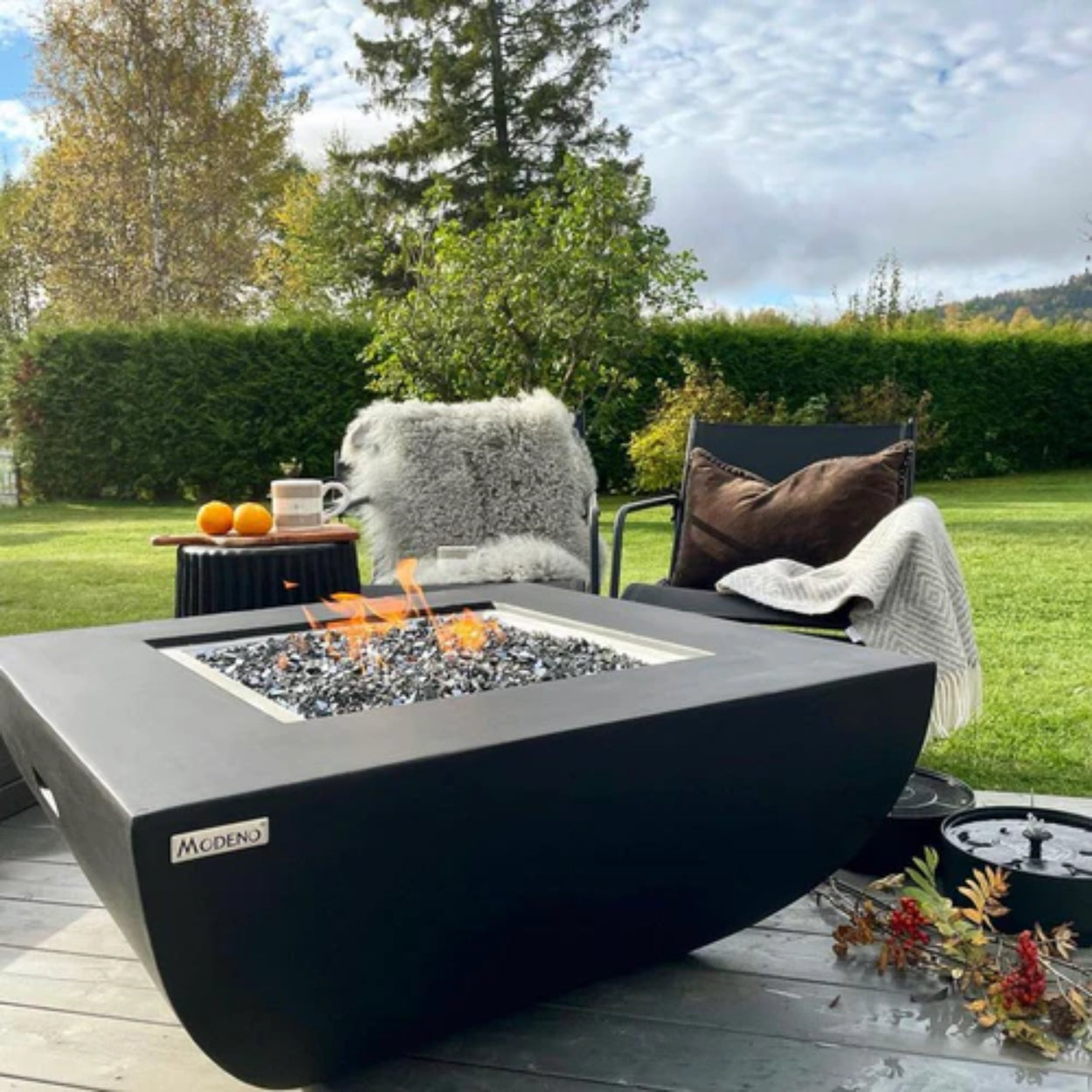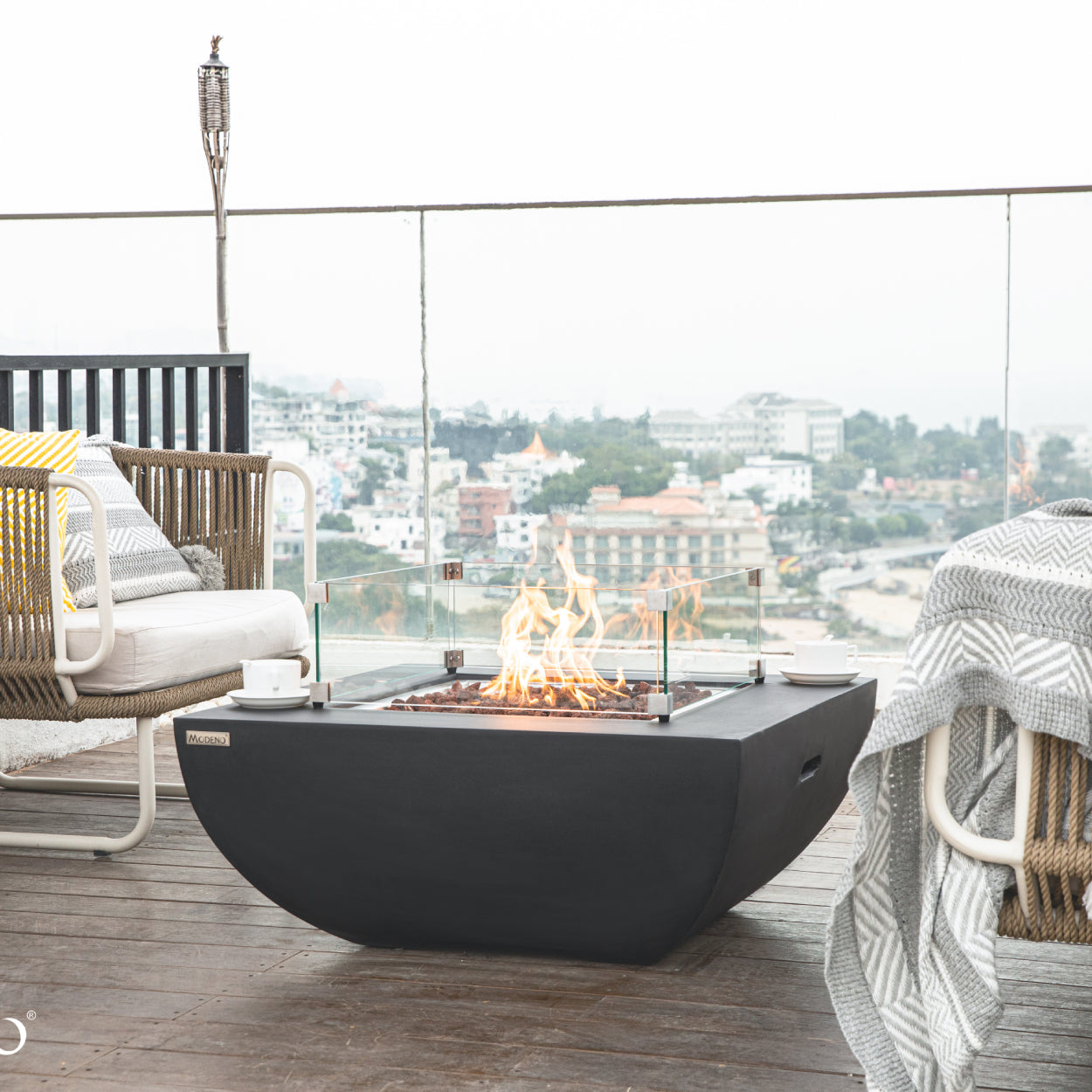 Deze stijlvolle vuurtafel combineert een modern design met gebruiksgemak en is geschikt voor zowel binnen- als buitengebruik. De robuuste behuizing is met de hand vervaardigd uit glasvezelversterkt beton en heeft een gepolijste look. Een echte eyecatcher voor iedere ruimte.