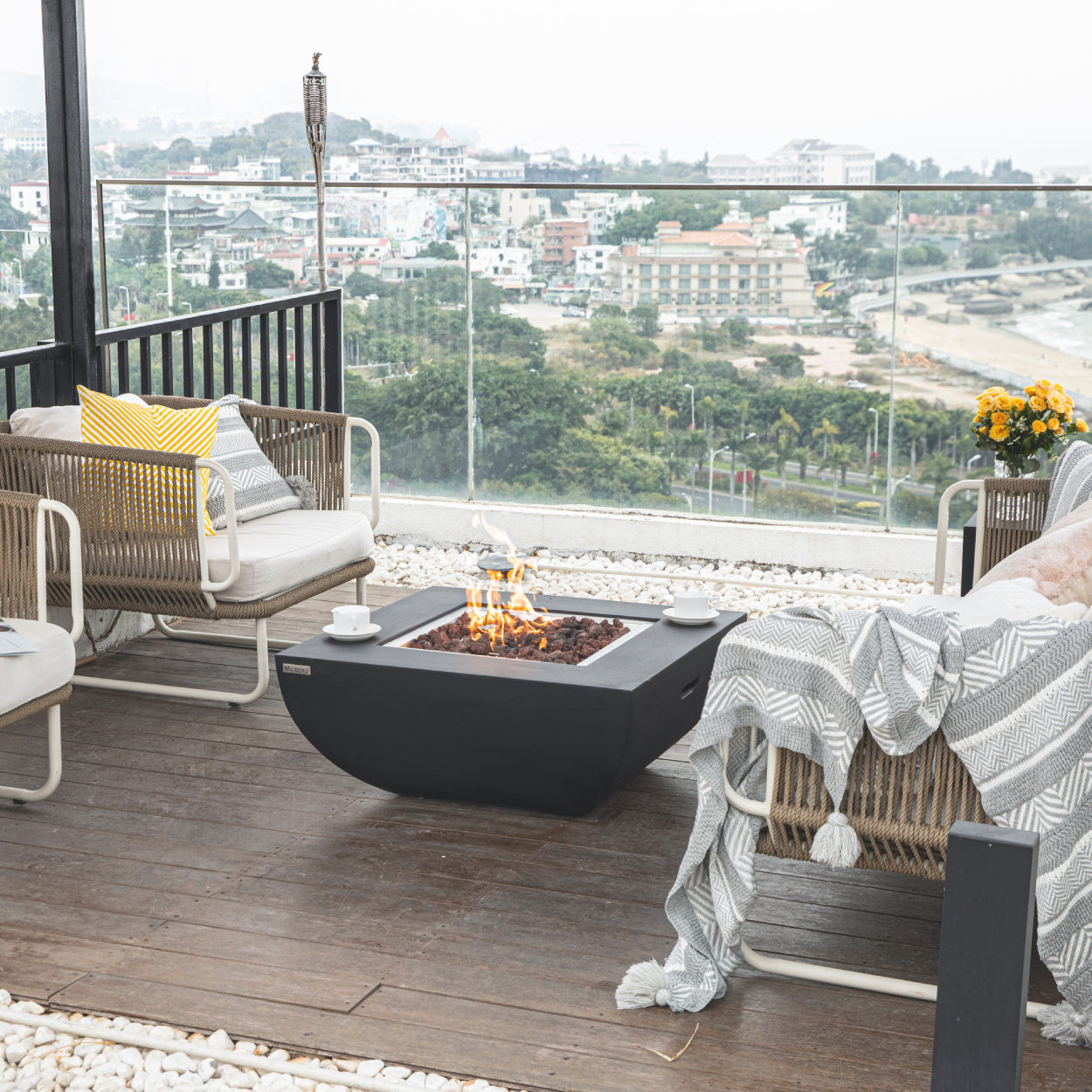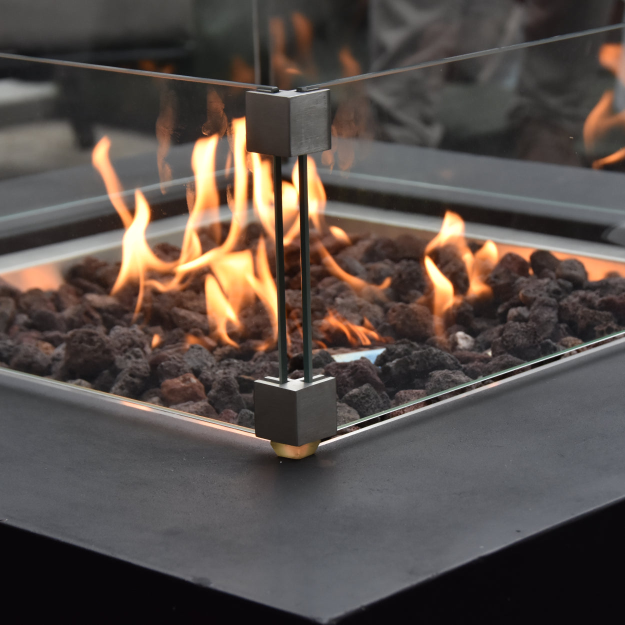 Dankzij het slimme formaat (87 x 87 x 43,85 cm) is de haard eenvoudig te plaatsen en te verplaatsen. Een beschermhoes wordt standaard meegeleverd om je vuurtafel te beschermen tegen weer en wind.