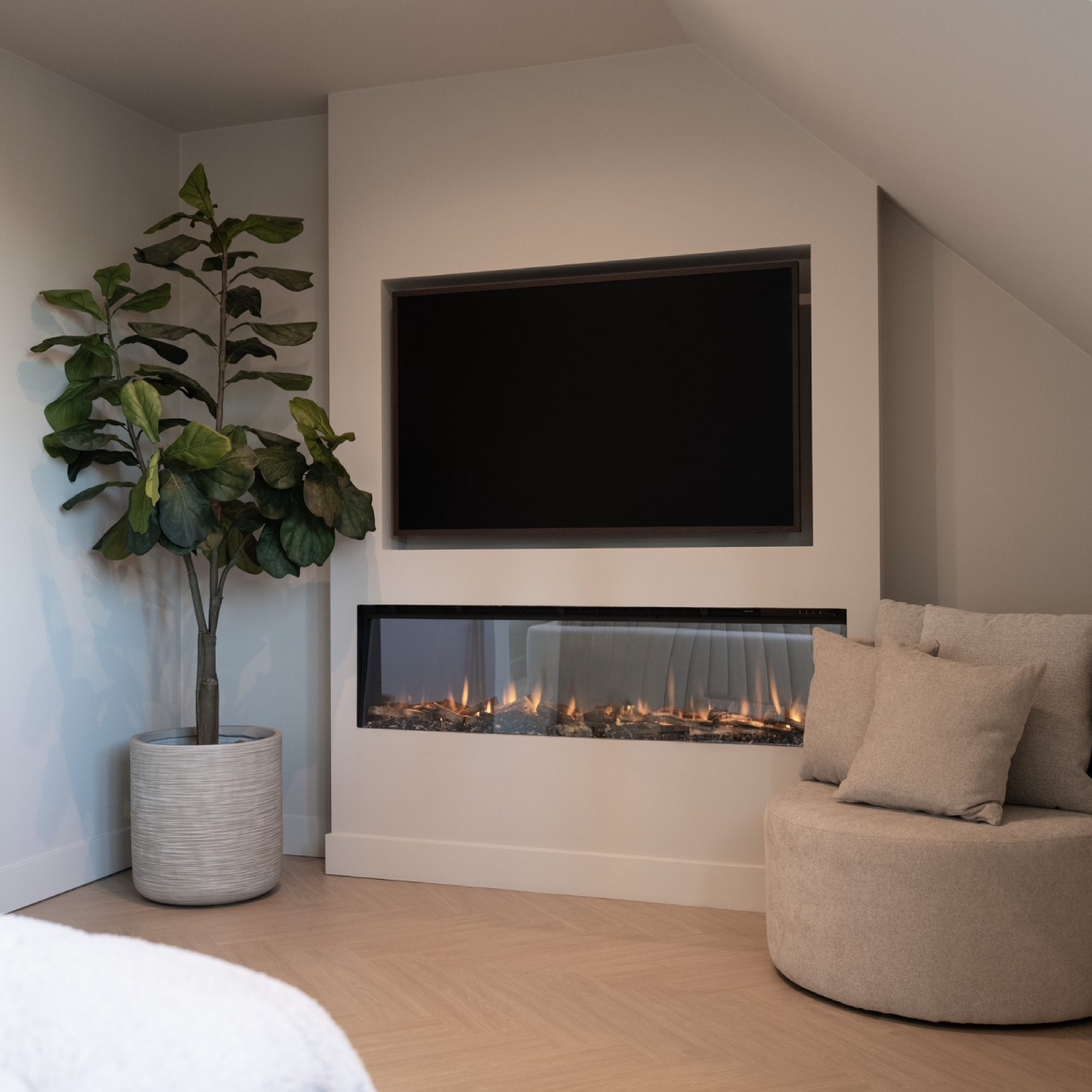 Beschikbaar in breedtes van 900mm tot 1900mm, zodat je altijd een formaat vindt dat perfect aansluit bij jouw ruimte en stijl. Dankzij het ondiepe ontwerp is deze haard ook ideaal voor plaatsing onder een TV of in een moderne cinewall.