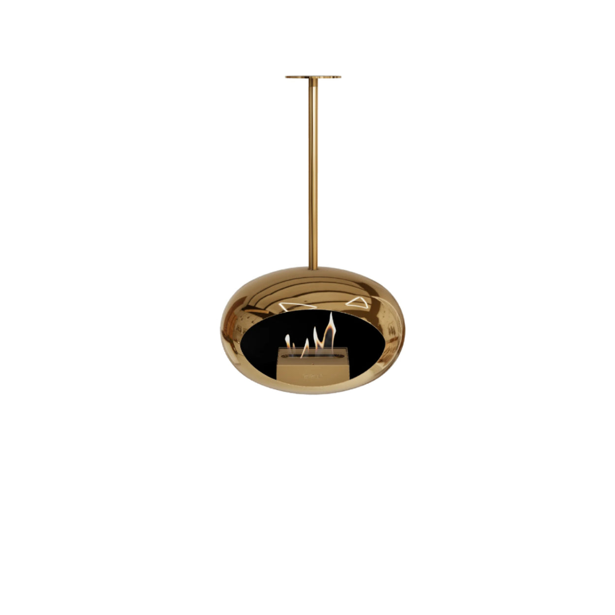 De Sky is verkrijgbaar in verschillende lengtes en wordt geleverd met diverse accessoires, zoals verlengstukken en scharnieren voor schuine plafonds. De ophangstangen zijn beschikbaar in roestvrij staal, mat zwart (powdercoated) of roségoud, en kunnen tot wel 5 meter worden verlengd. Bovendien kunt u de haard eenvoudig draaien, zodat u optimaal van de vlammen geniet.