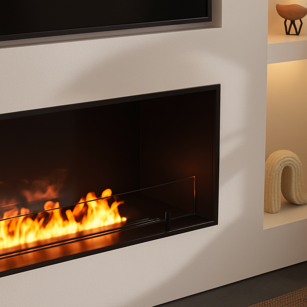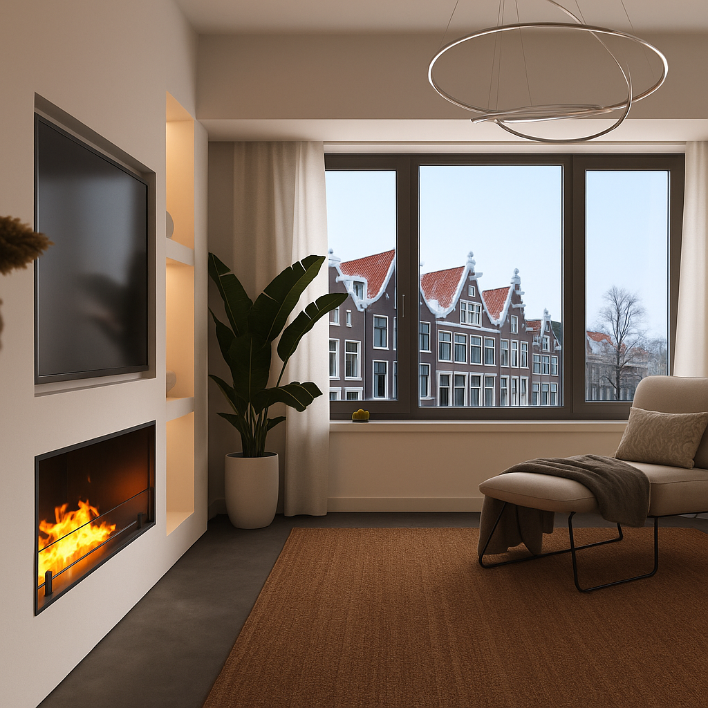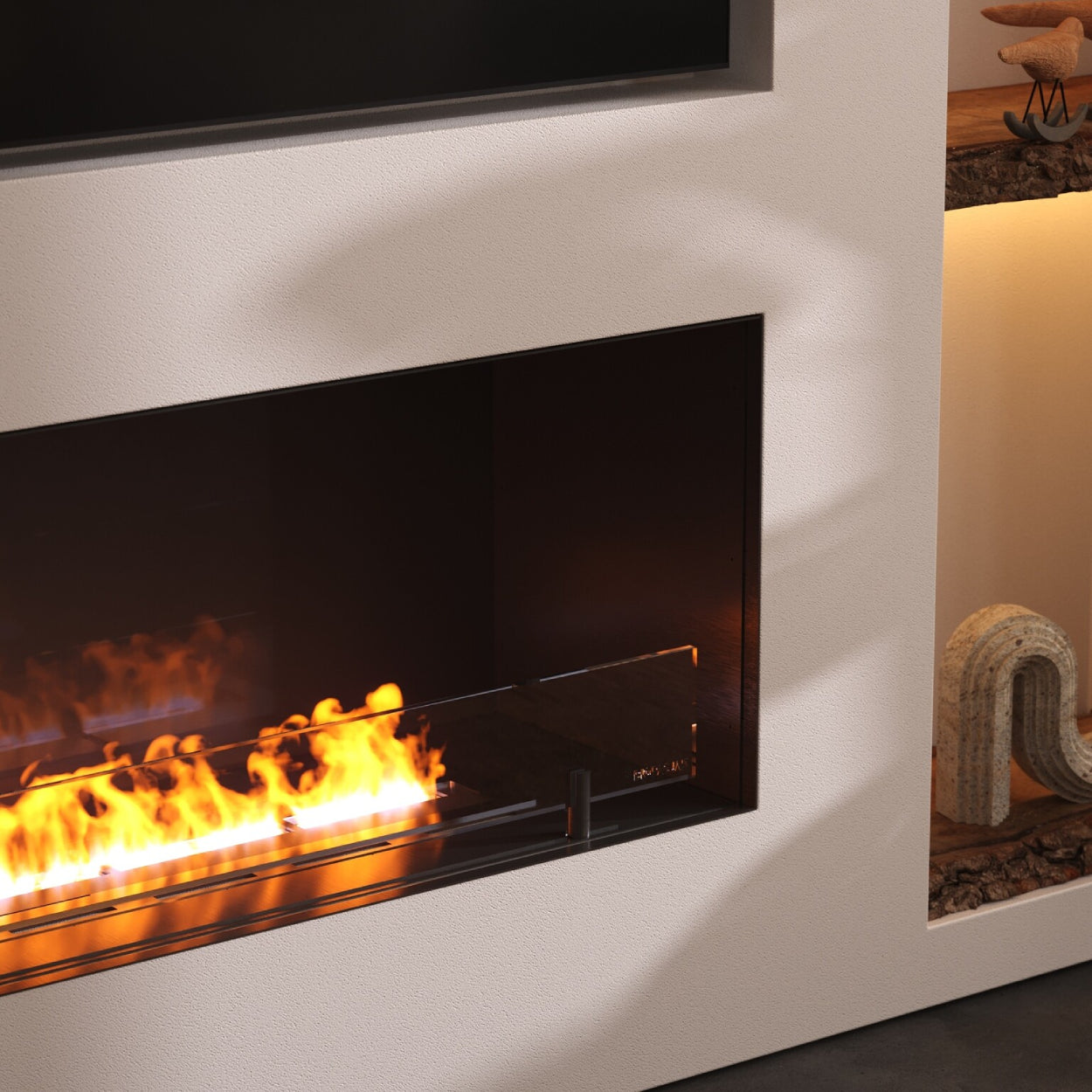 - Bio-ethanol haarden – écht vuur, afgewerkt met vuurvaste Promafour-platen