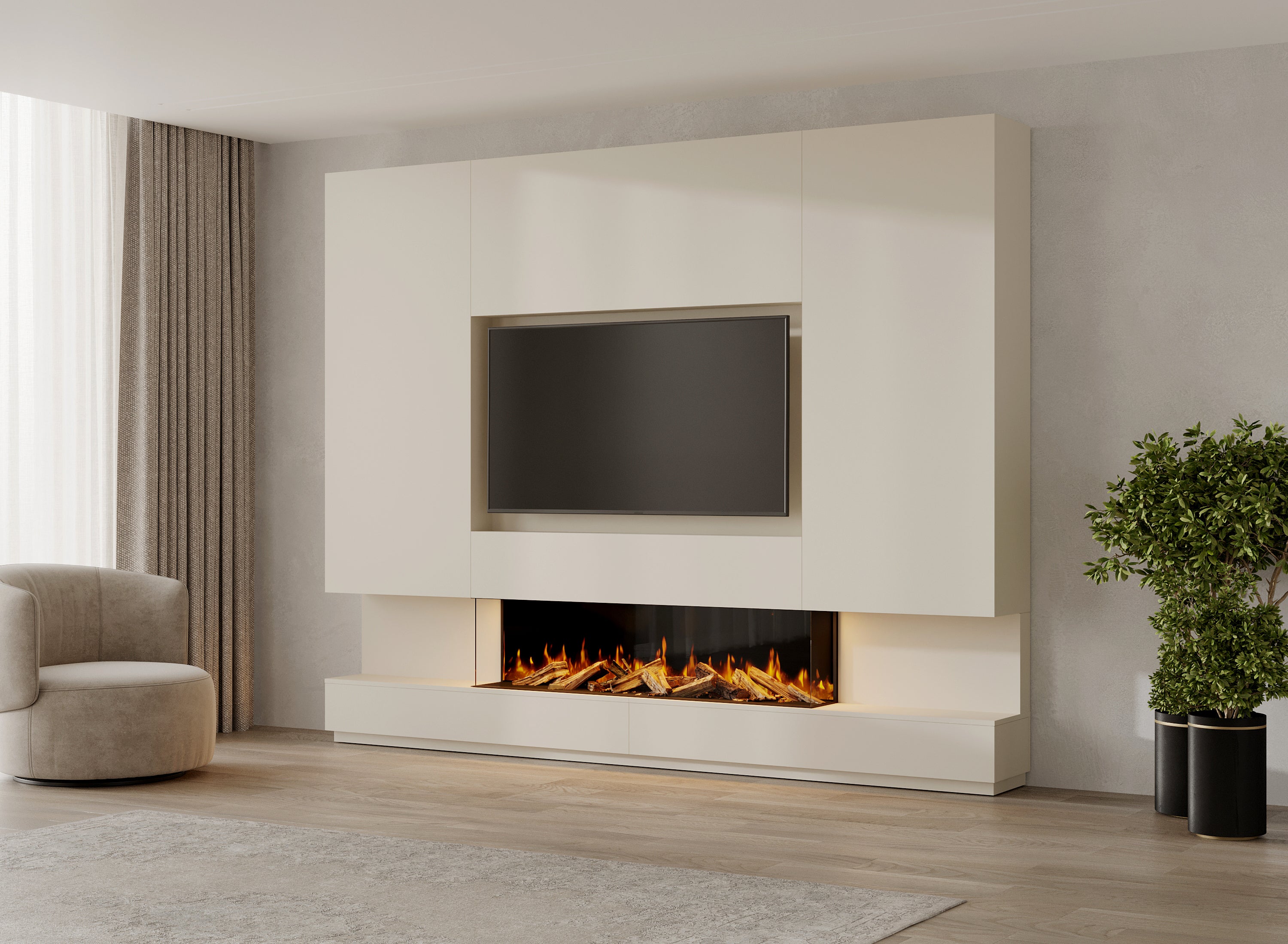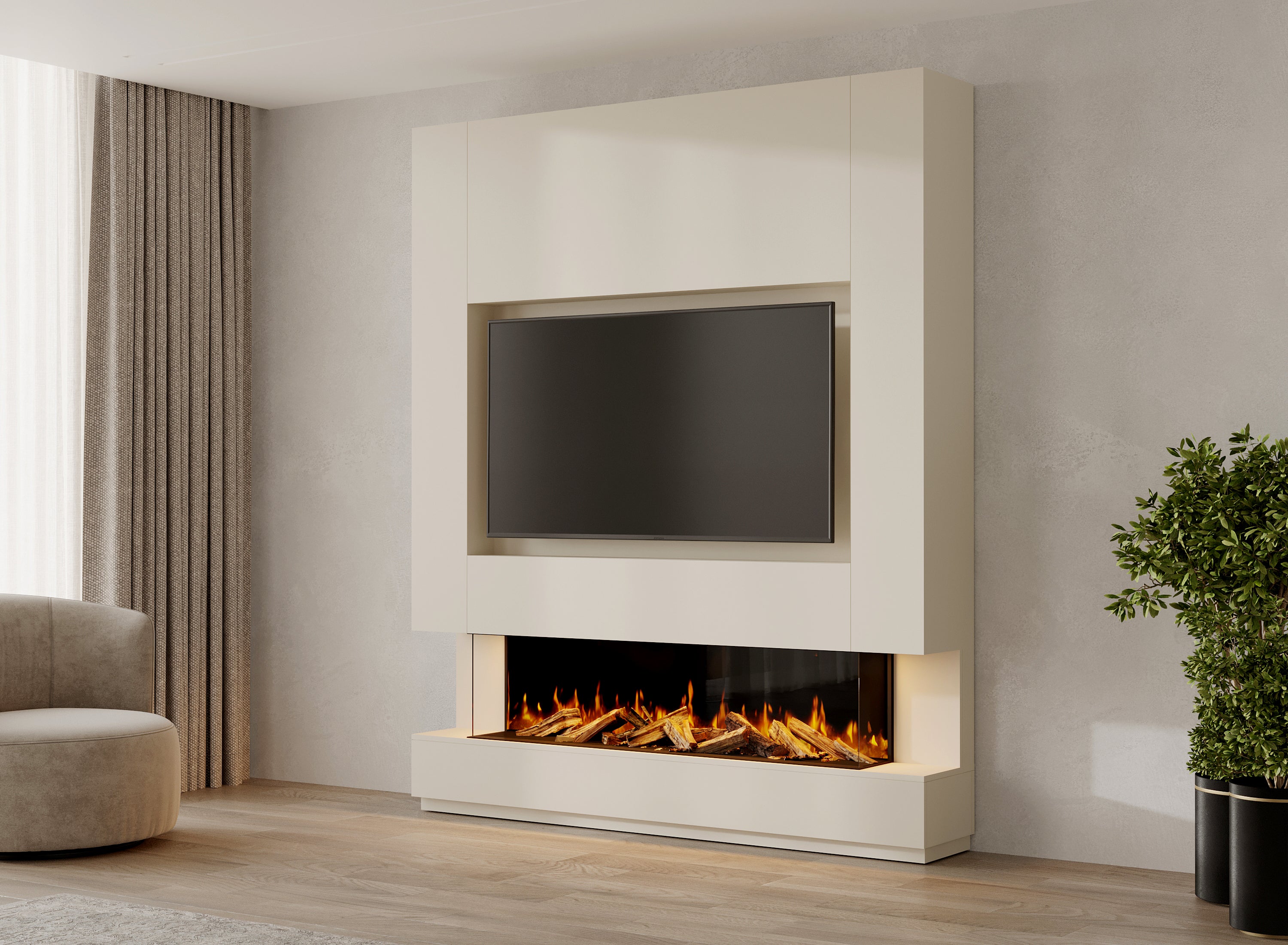 Moray - TV-wand met panoramische haard met luxe uitstraling