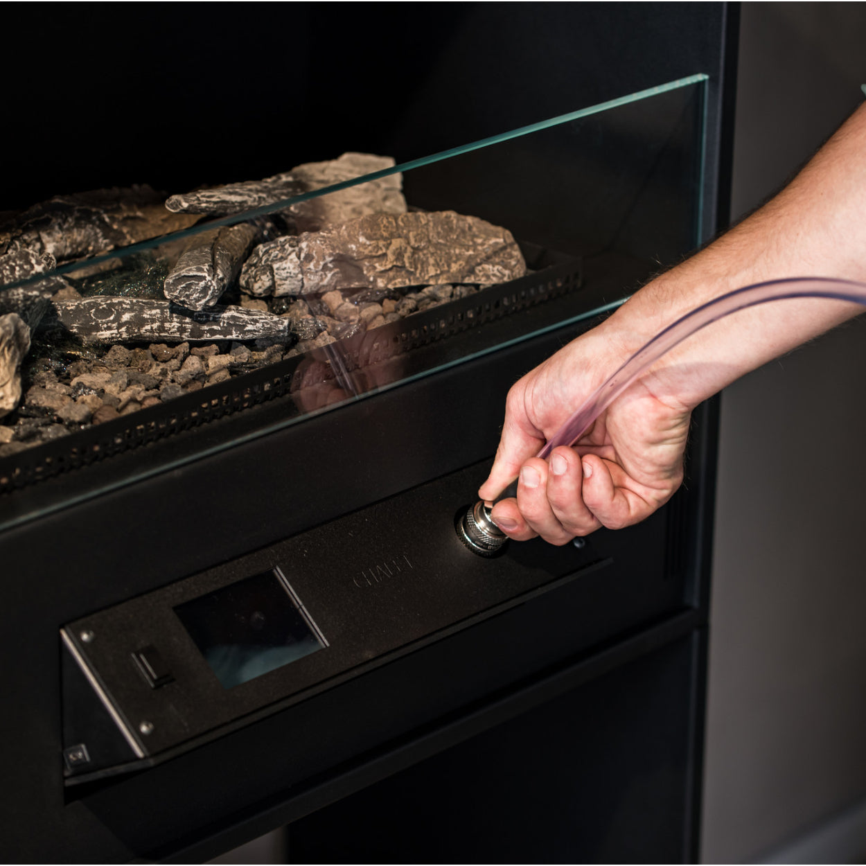 Dankzij het automatische bijvulsysteem voorkomt u morsen of overmatig bijvullen. De speciaal ontworpen pomp communiceert direct met de haard en vult deze met precies de juiste hoeveelheid brandstof – veilig en moeiteloos.Blije klanten aan het woord