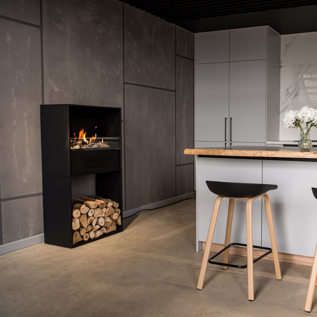 Stel uw Mosswood volledig naar wens samen met optionele consoles. Deze losse modules kunt u aan de zijkanten of bovenkant van de haard plaatsen voor extra opbergruimte of een decoratief accent – perfect om bijvoorbeeld houtstammen in te leggen. Let op: standaard wordt de haard zonder consoles geleverd.
