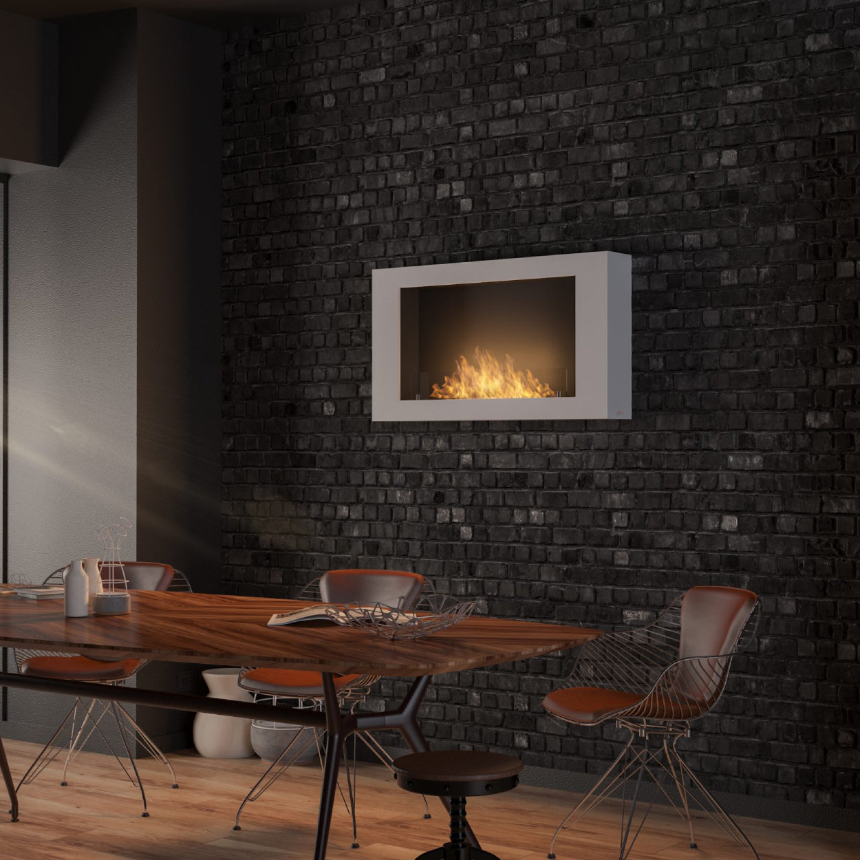 De witte uitvoering van de Murall is een ware eyecatcher in lichte interieurs. De frisse uitstraling laat het vuur extra opvallen en geeft een ruimtelijk gevoel aan de kamer. Perfect voor minimalistische, Scandinavische of moderne woonstijlen.