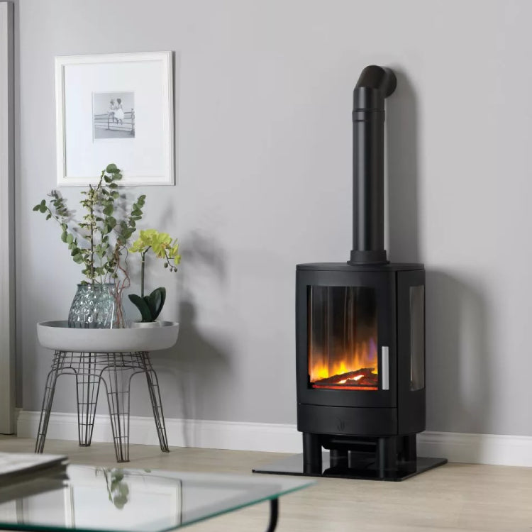 Met zijn glazen zijpanelen is de Neo 3C een echte blikvanger, perfect voor open woonruimtes of serres. U bedient de haard moeiteloos via de meegeleverde afstandsbediening of een handige app. Bovendien kunt u kiezen of u alleen het sfeervolle vlammenspel wilt of ook extra warmte – ideaal voor elk seizoen.