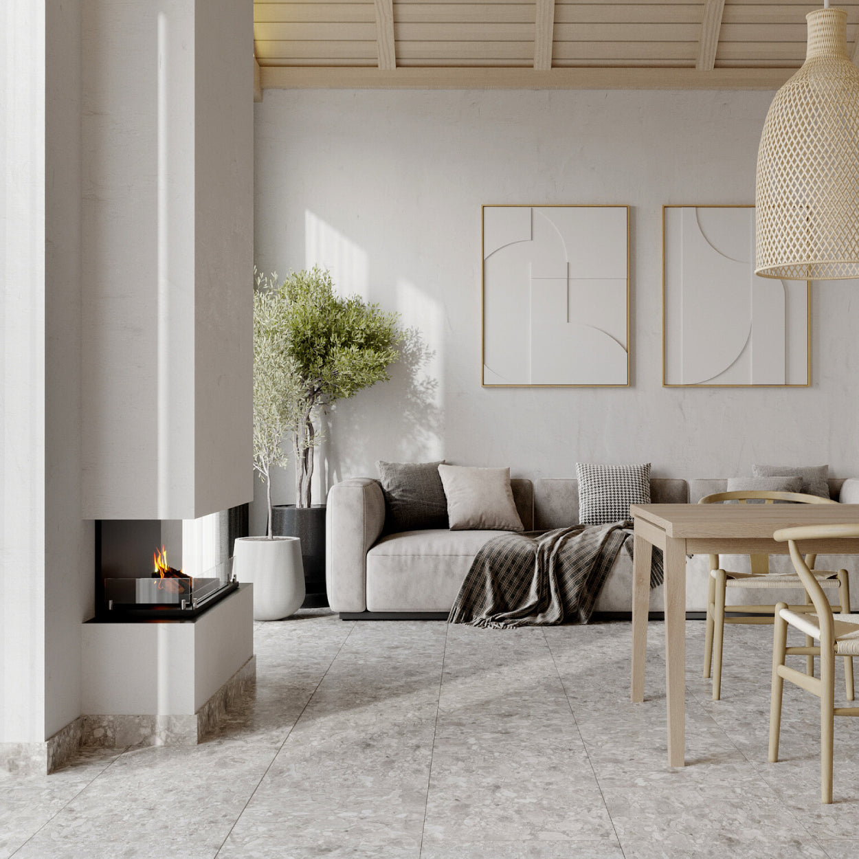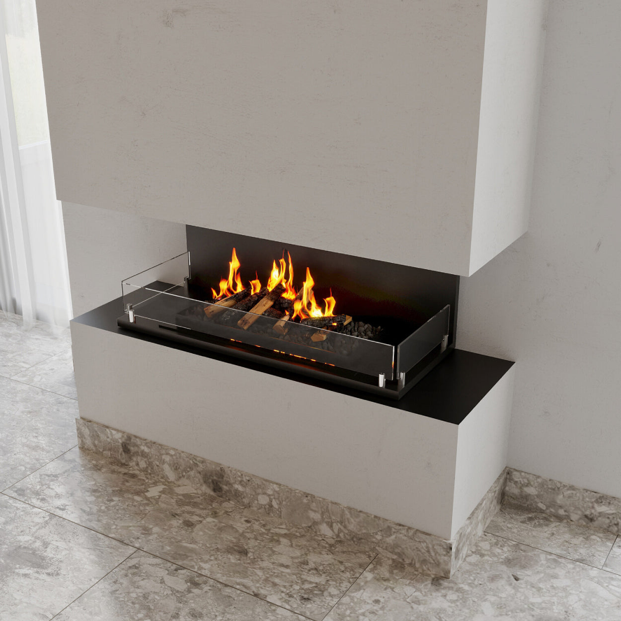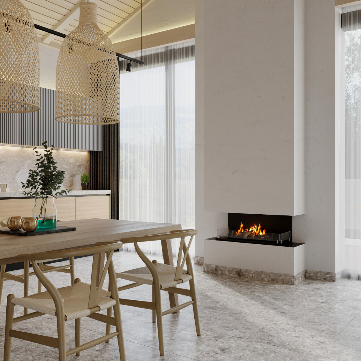 Deze koof Otranto is ideaal voor kleinere ruimtes of hoekopstellingen. De marmerlook vloer en strakke witte afwerking maken hem perfect voor serene, elegante interieurs. Kies voor bio-ethanol voor een geurloos en rookvrij vuur.