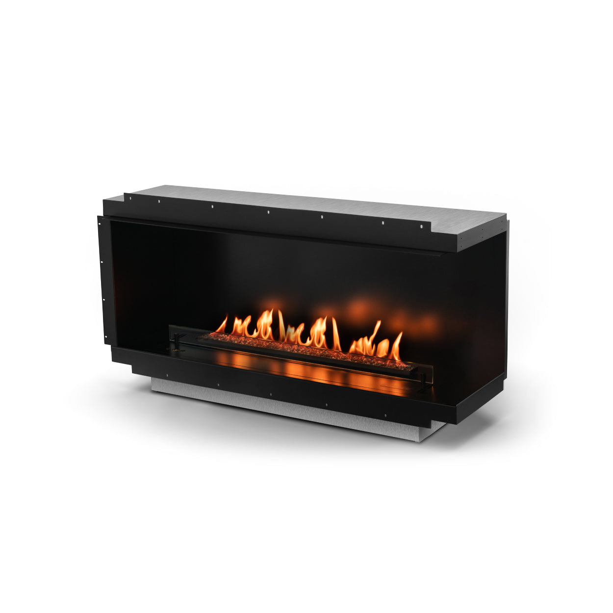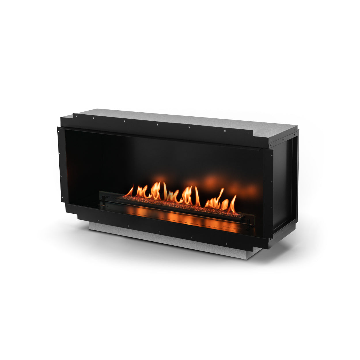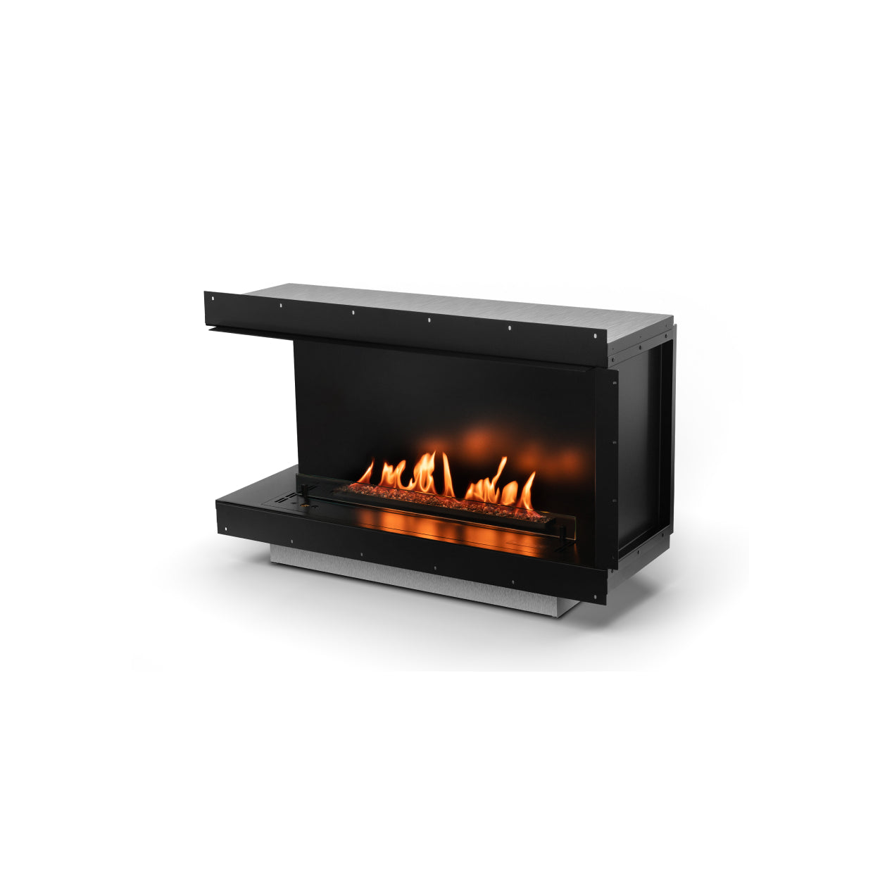 Dankzij het slimme 4-in-1 ontwerp bepaalt u zelf hoe de haard wordt ingebouwd: als fronthaard, linkerhoek, rechterhoek of zelfs panoramisch. De zijpanelen zijn eenvoudig te demonteren, zodat u flexibel blijft – nu en in de toekomst.