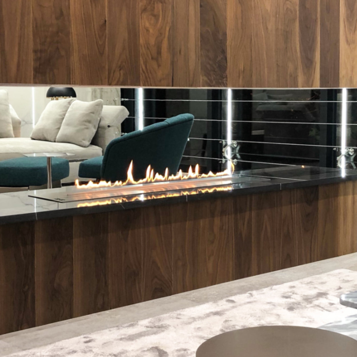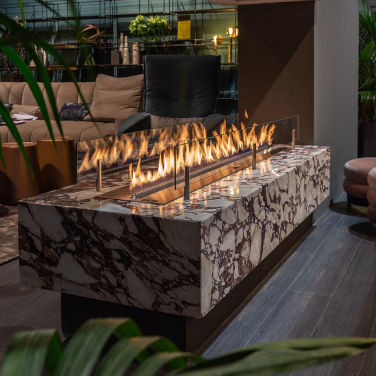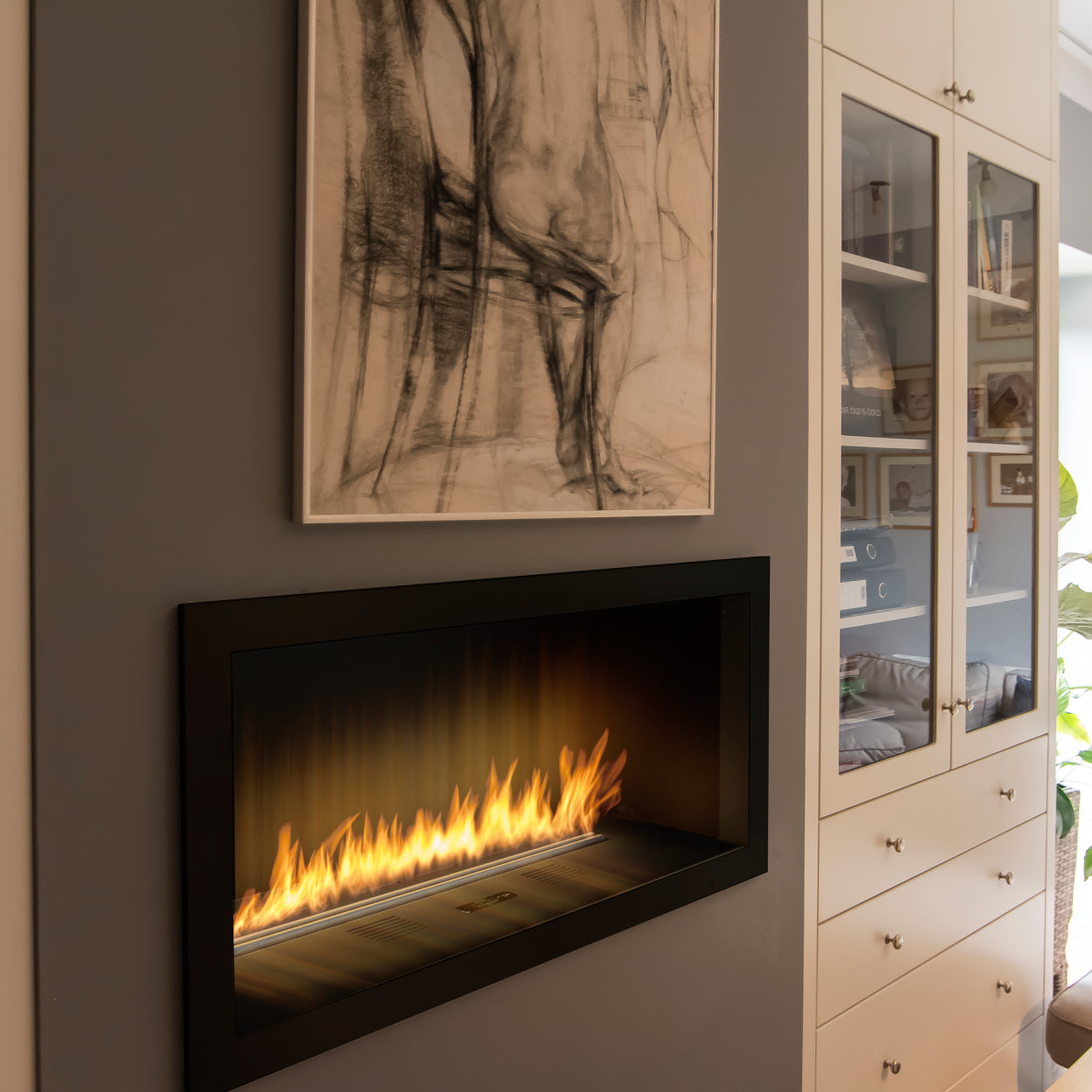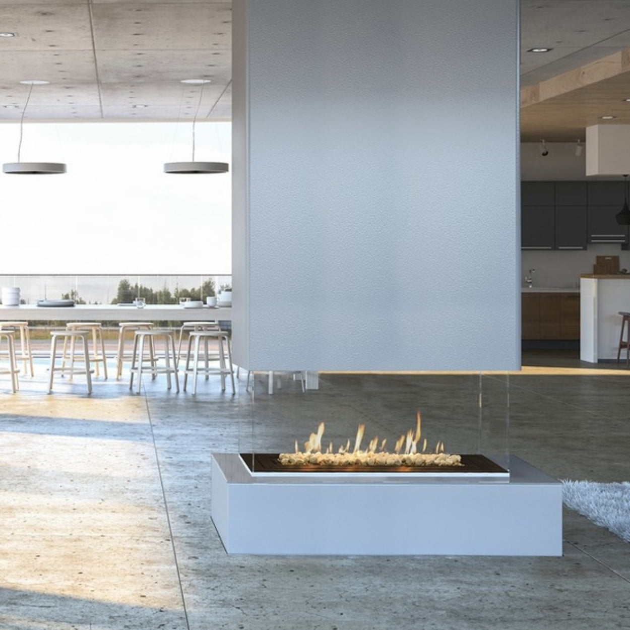 Of u nu kiest voor een strakke, enkelzijdige nis, een sfeervolle roomdivider of een vrijstaand eiland: de Prime Fire 2.0 laat zich naadloos in uw ontwerp integreren. Optionele keramische houtdecoratie geeft de vlammen extra charme.