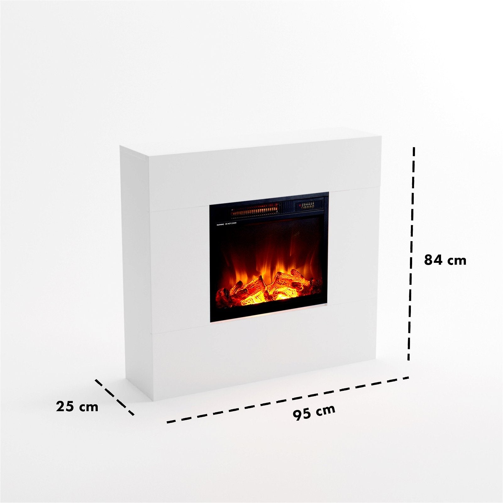De Rico wordt compleet geleverd met elektrische inzethaard en wandmeubel in wit, grijs of zwart. Vervaardigd uit hout, metaal en glas, en voorzien van decoratieve houten elementen. Werkt op een standaard 230V stopcontact.