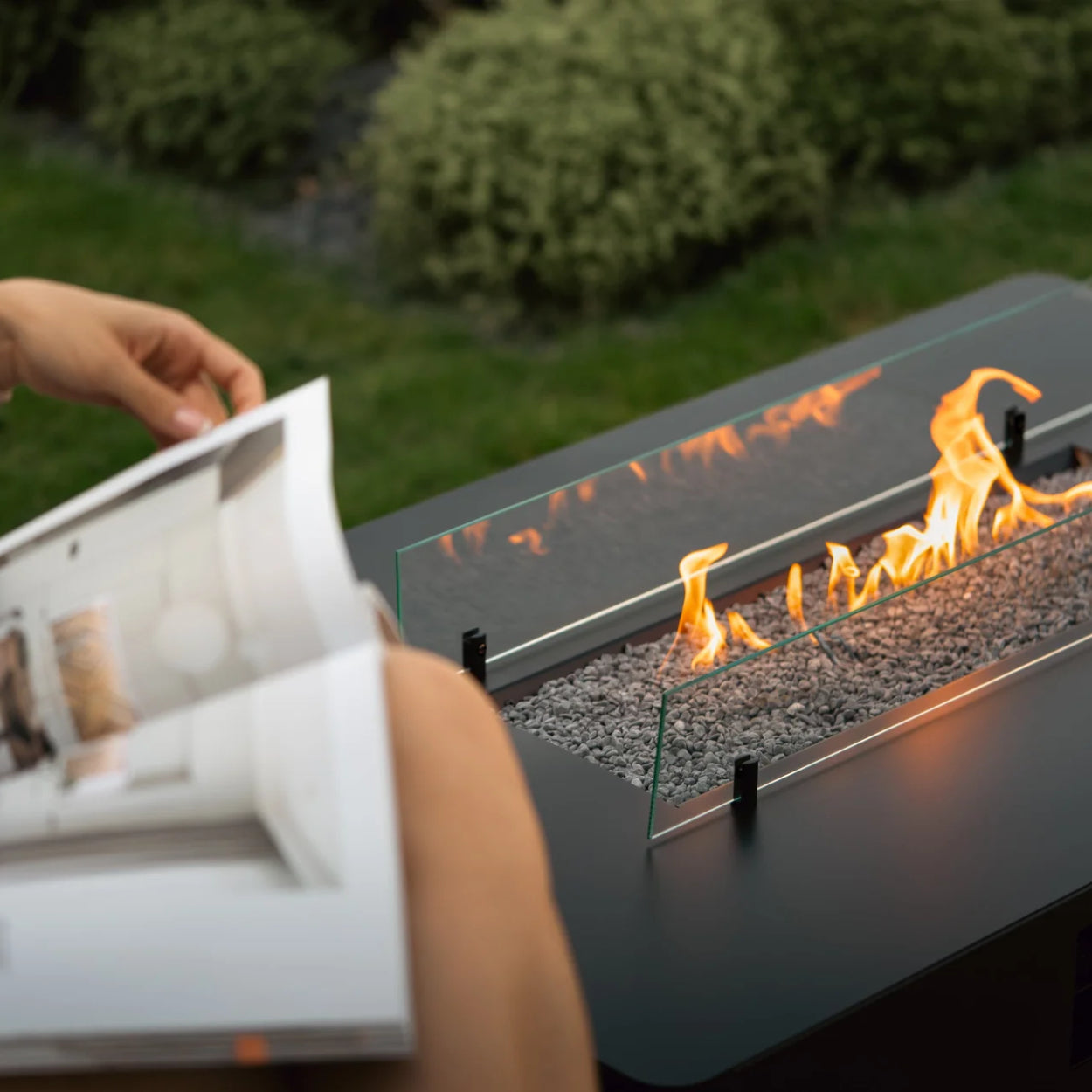De Rio Table is zowel een stijlvolle koffietafel als een krachtige gashaard. Dankzij het slimme ontwerp geniet u van het gemak van een tafel en de magie van een vuurhaard – perfect voor lange zomeravonden of frisse herfstdagen.