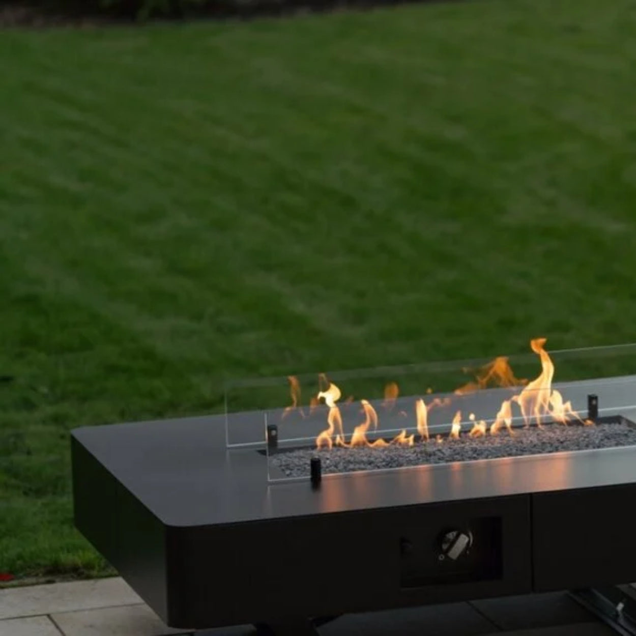 De Rio Table combineert een stijlvolle salontafel met een volwaardige gashaard. Dit bespaart ruimte én voegt sfeer toe aan elke buitenomgeving.