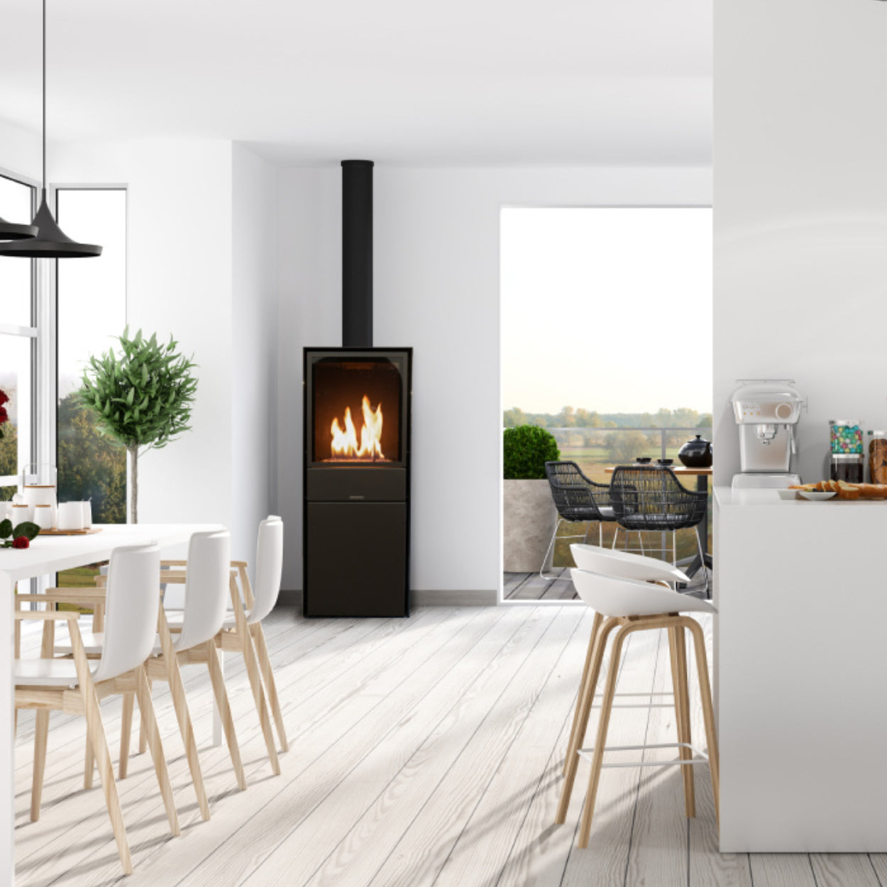 De Scandi combineert minimalistisch design met maximale eenvoud: géén schoorsteen nodig, géén rookkanaal en volledige controle met één druk op de knop.
