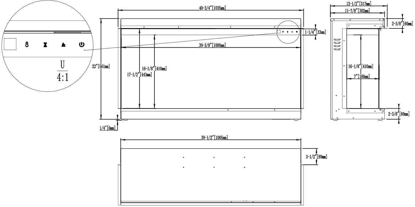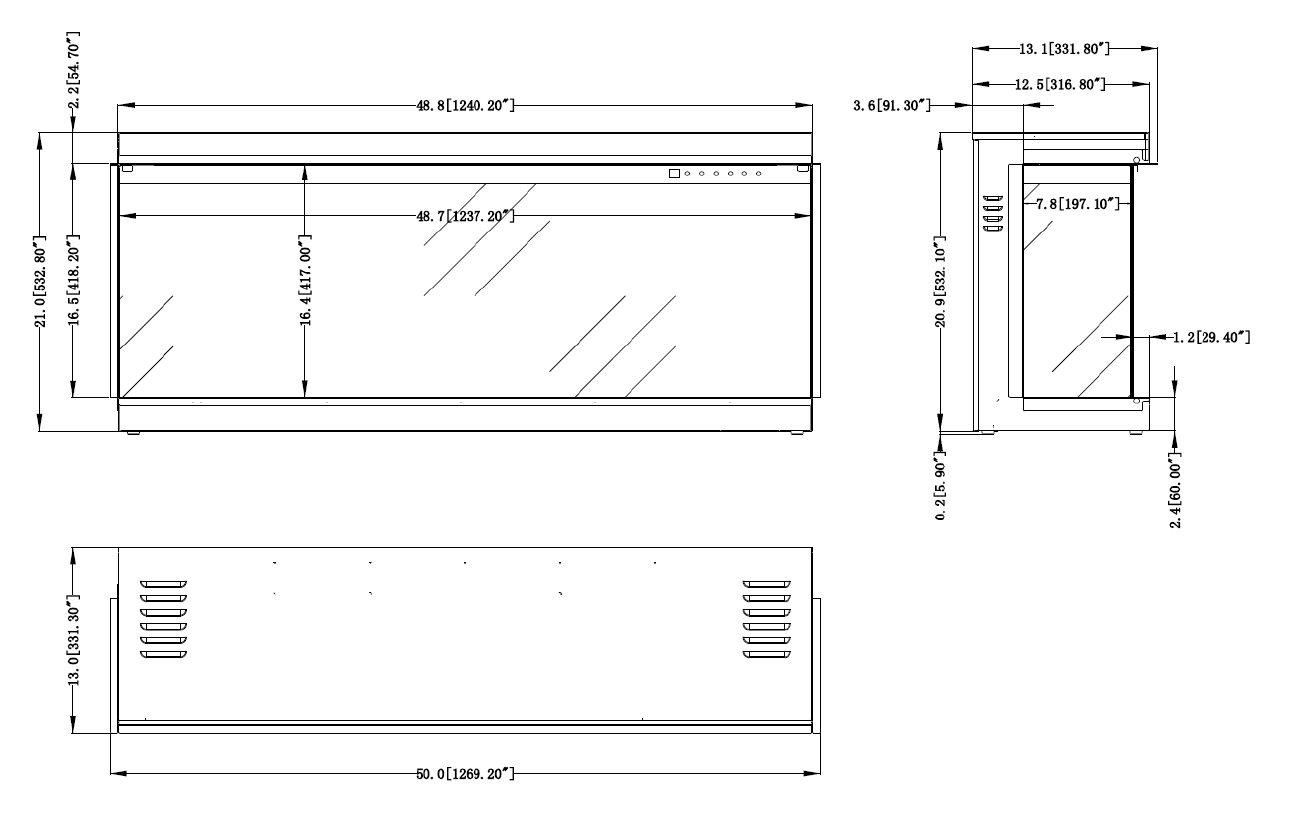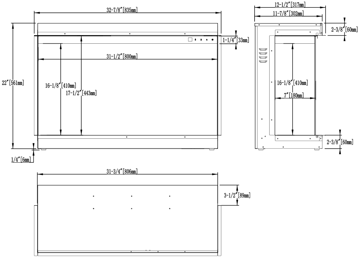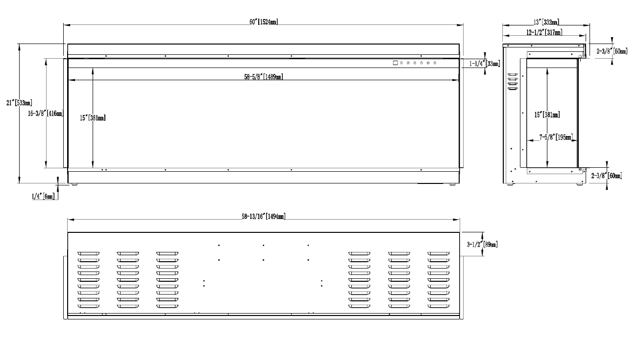 - Drie verwarmingsstanden: 0W (decoratief), ±750W en ±1500W