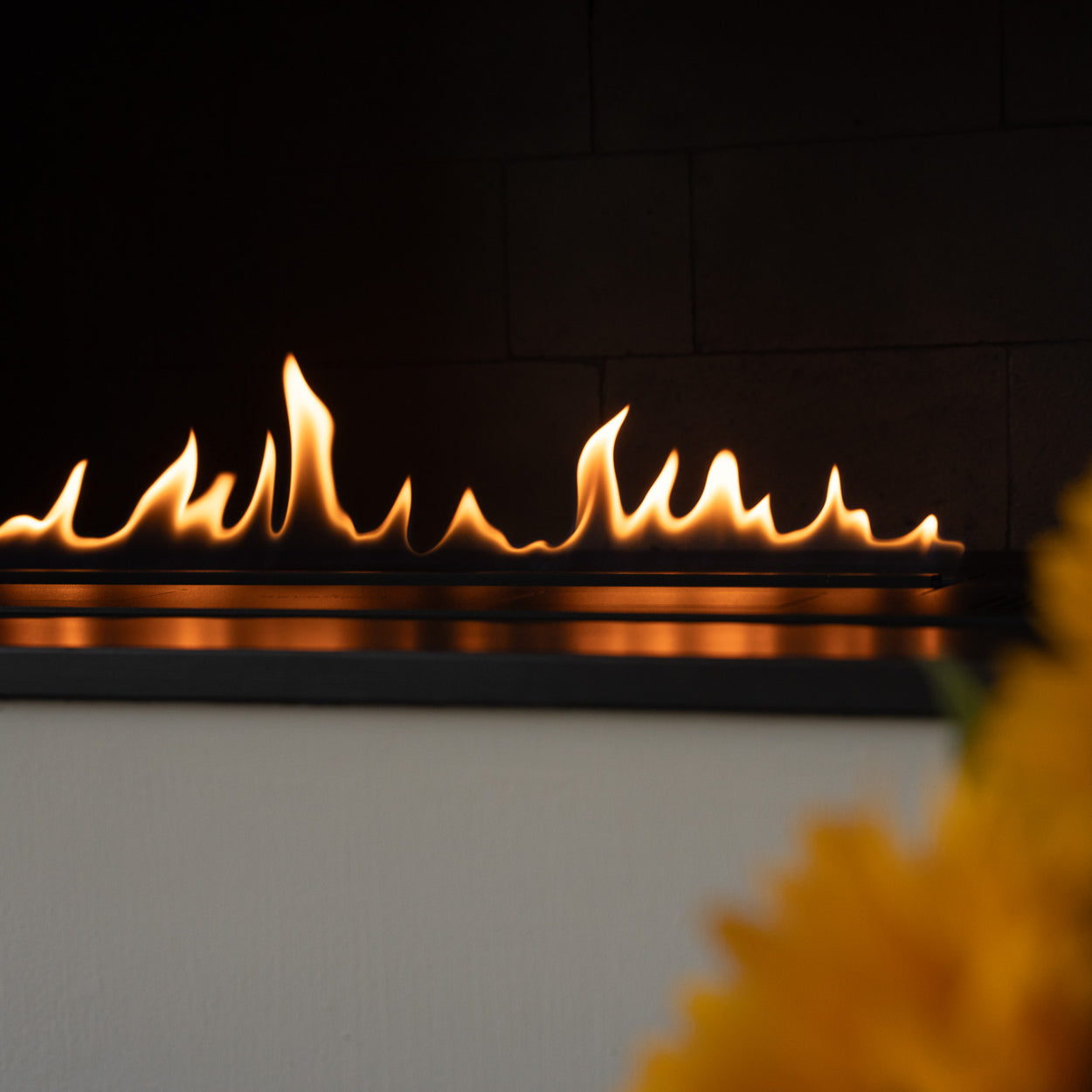 Met één druk op de knop activeert u het vuur. Dankzij slimme sensoren en AEVB-technologie geniet u van een stabiele, gecontroleerde vlam – zonder schoorsteen, rook of gevaren.