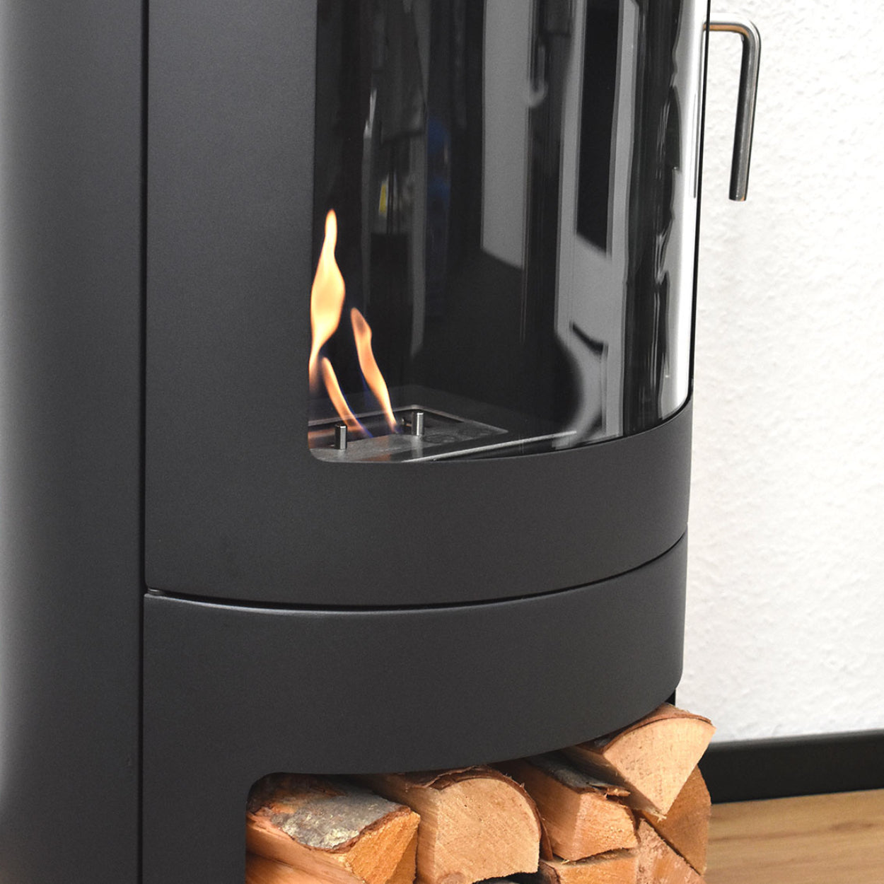 De combinatie van zwart gepoedercoat staal en glas geeft de Värme een moderne, tijdloze uitstraling die past in vrijwel elk interieur. Maak de look compleet door echte houtblokken onderin het houtvak te leggen.Blije klanten aan het woord