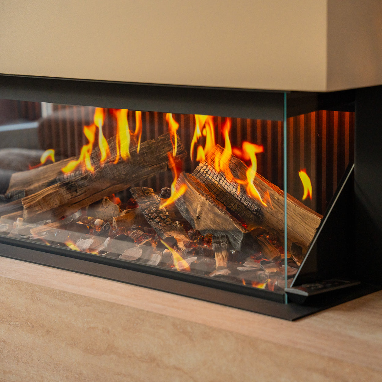 Met hoogwaardige 3D-projectietechniek, natuurgetrouwe houtstammen en een LED-gloeibed biedt de Virtuo Evolve een levensechte vuurervaring die bijna niet van echt te onderscheiden is.